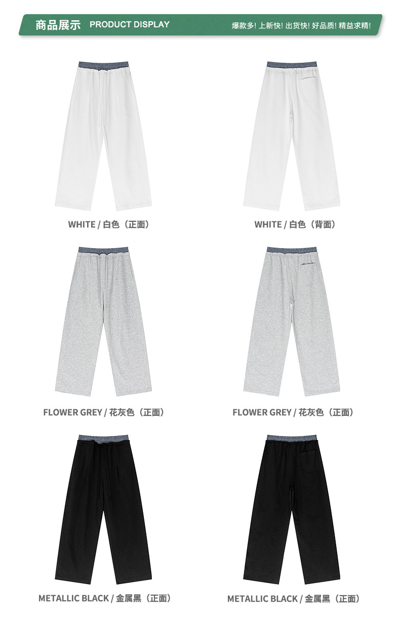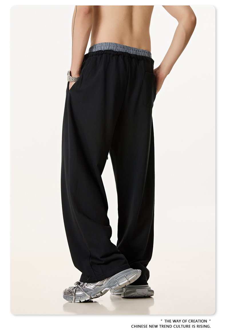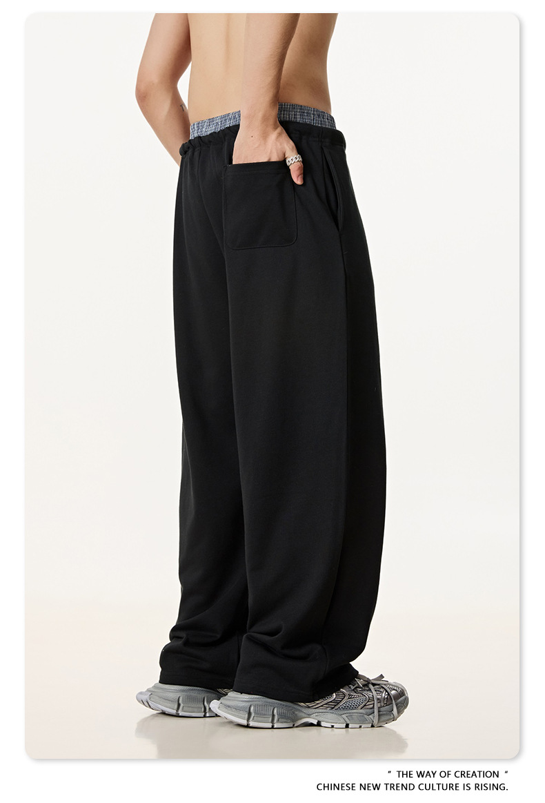 BE 남성 2025 여름 미국 스타일 패션 브랜드 중립 스타일 스티칭 더블 허리 와이드 다리 바지 스포츠 스트레이트 바지 남성 패션