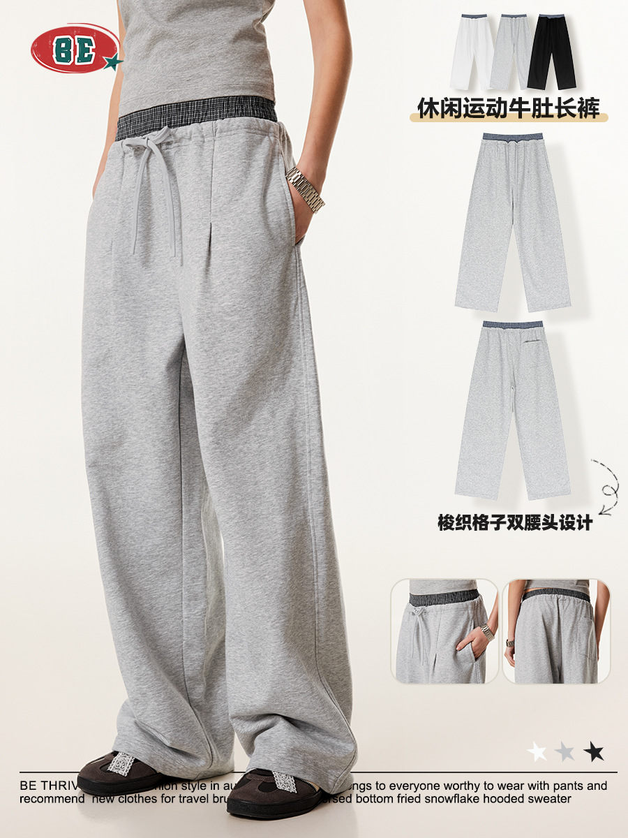 BE 남성 2025 여름 미국 스타일 패션 브랜드 중립 스타일 스티칭 더블 허리 와이드 다리 바지 스포츠 스트레이트 바지 남성 패션스토어 가기