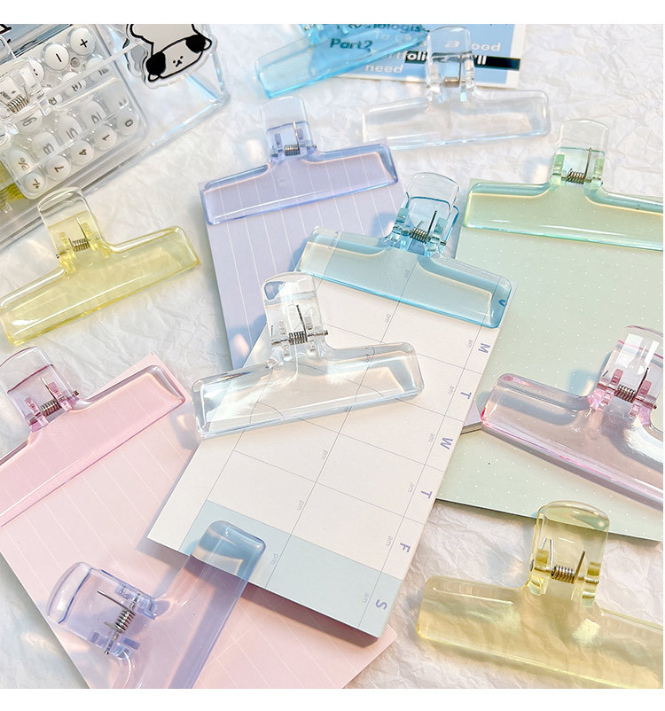 Ins 스타일 투명 아크릴 클립 명확하고 높은 색상 값 문구 폴더 학생 사무실 테스트 종이 클립 홀더