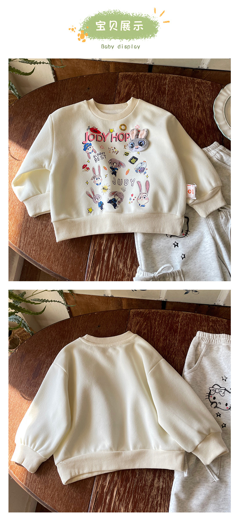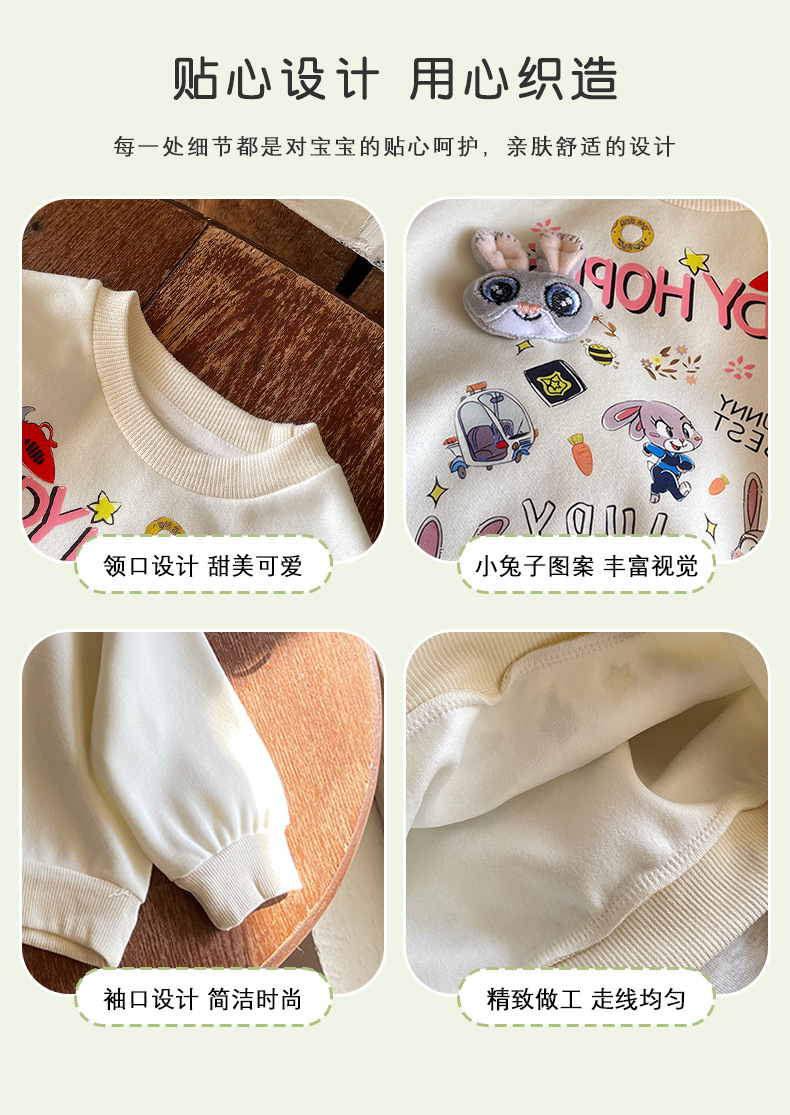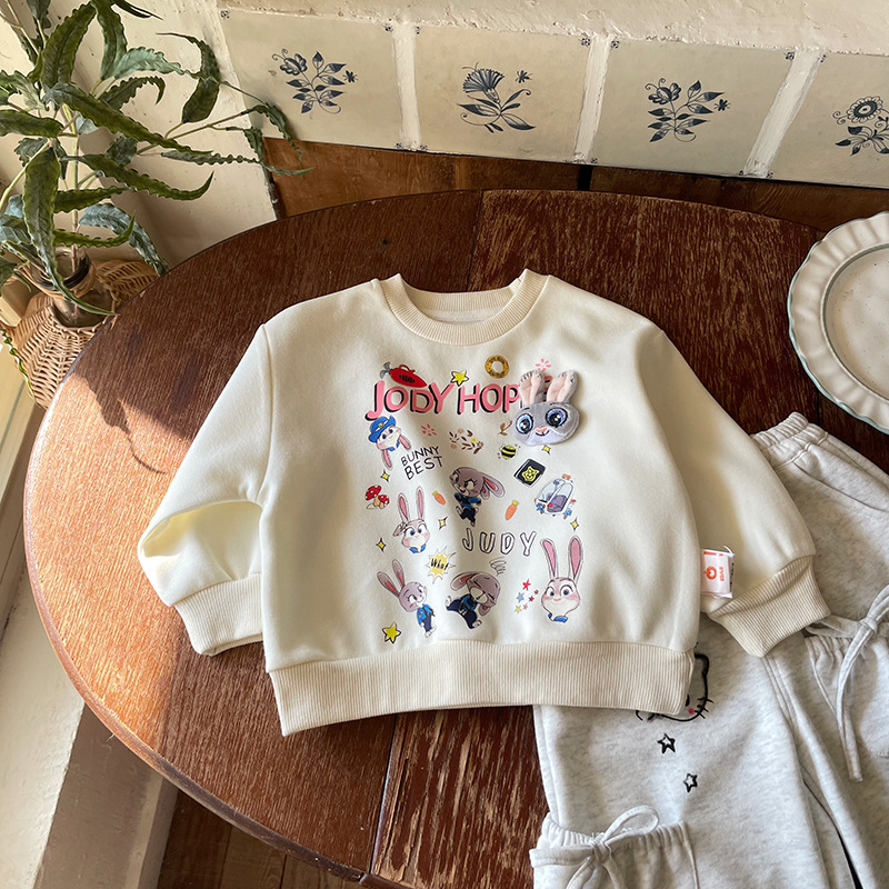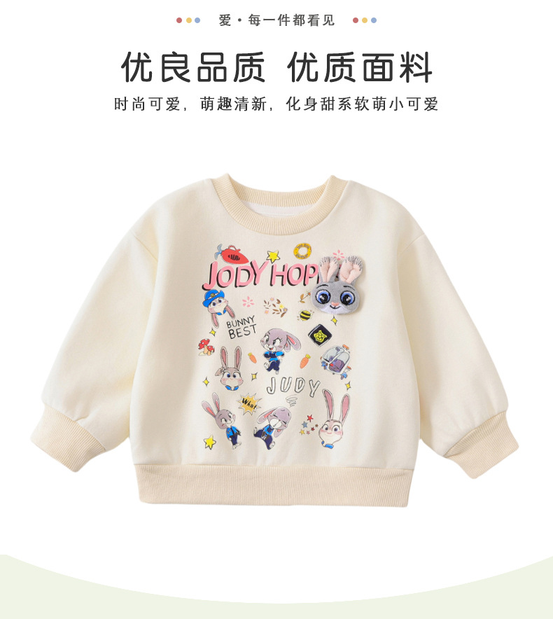 【재고 있음】CY259059 여아용 스웨트셔츠 2025 봄 신상 패셔너블한 만화 토끼 경찰관 라운드넥 스웨트셔츠스토어 가기