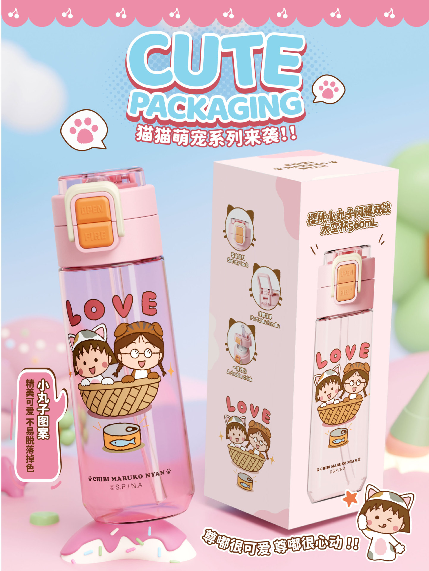 아서스 공장 체리 마루코 시리즈 빛나는 두 배 마시는 공간 컵 잠금 휴대용 밀짚 밀봉 누출 방지스토어 가기