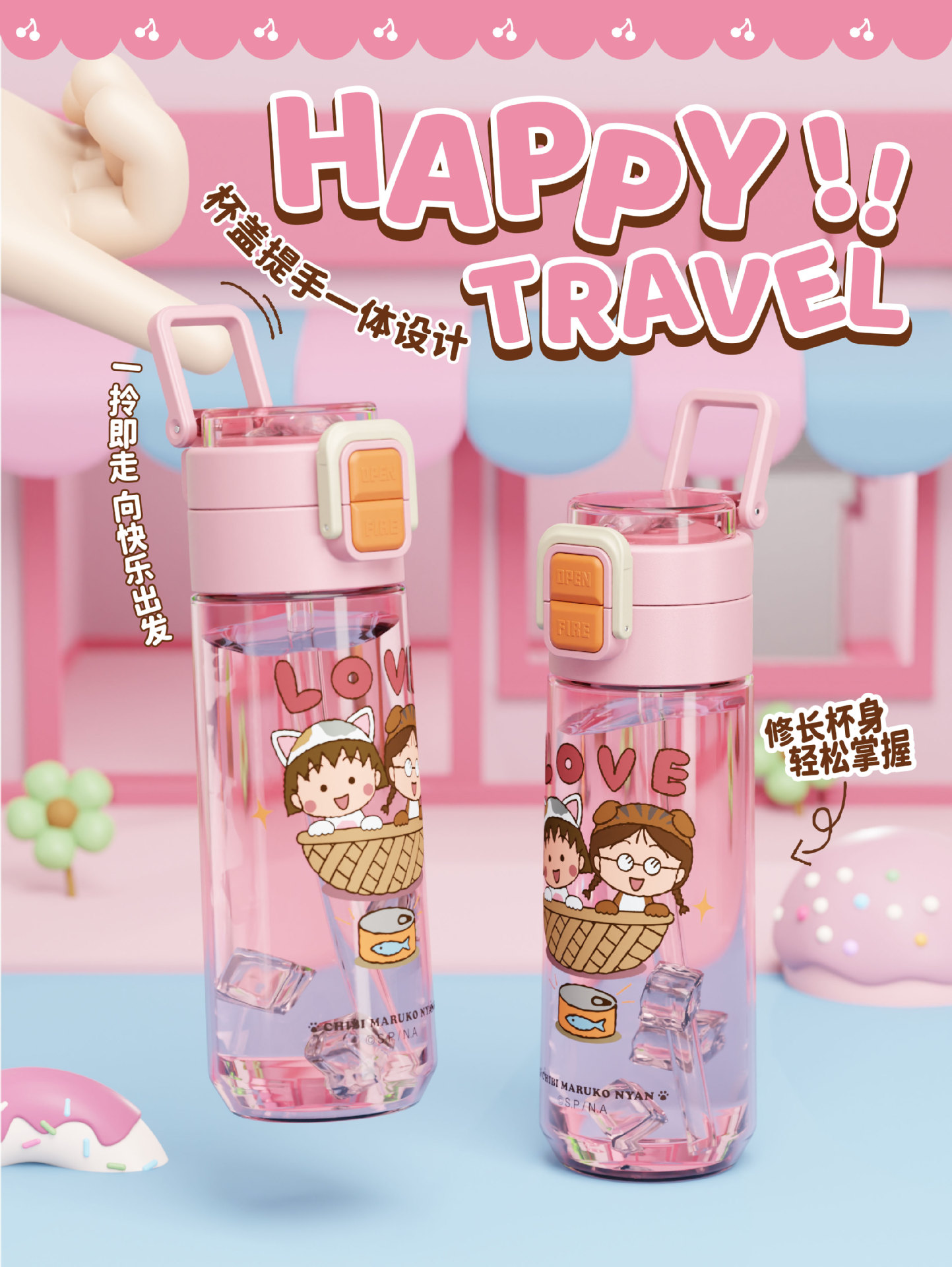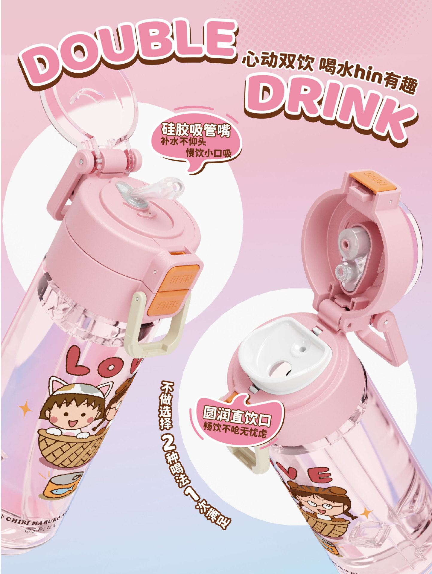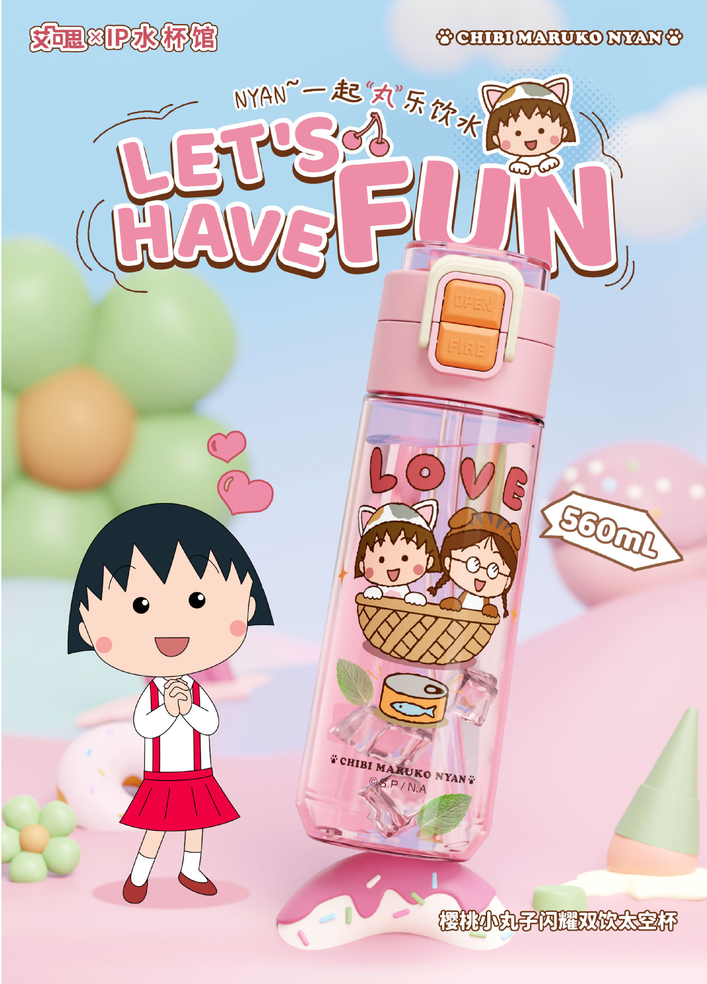 아서스 공장 체리 마루코 시리즈 빛나는 두 배 마시는 공간 컵 잠금 휴대용 밀짚 밀봉 누출 방지