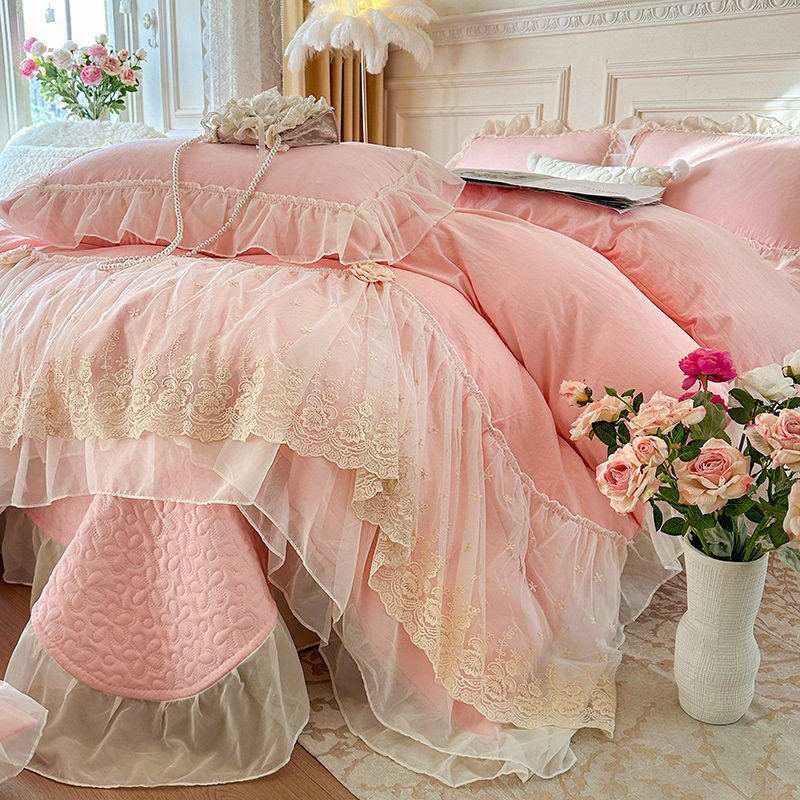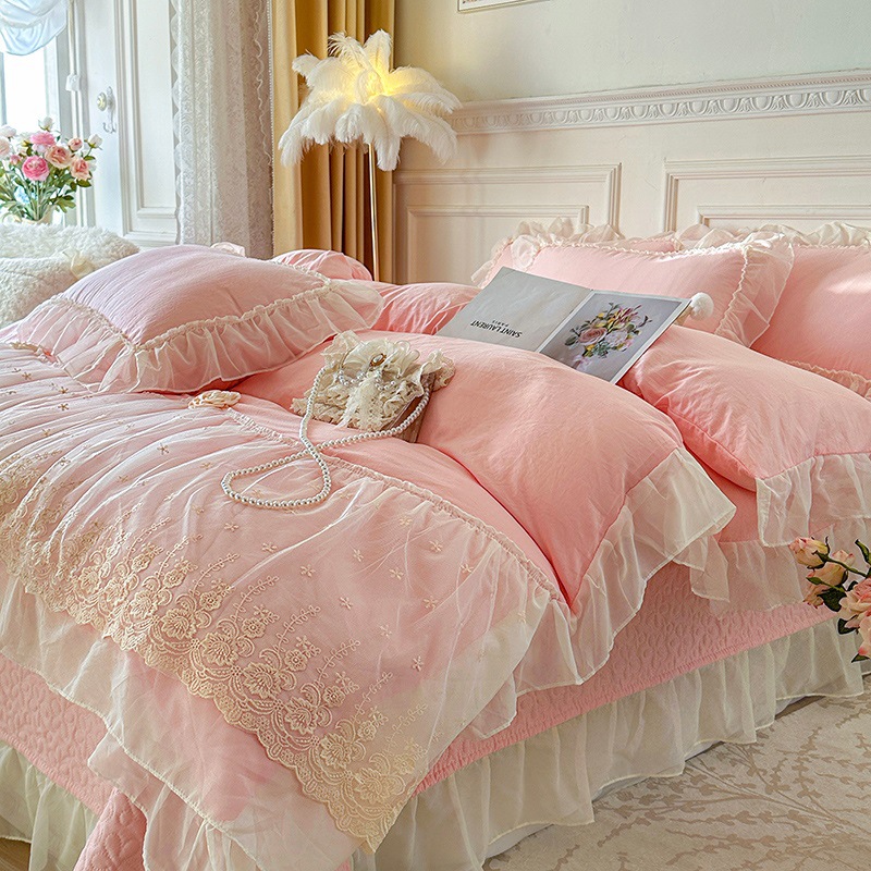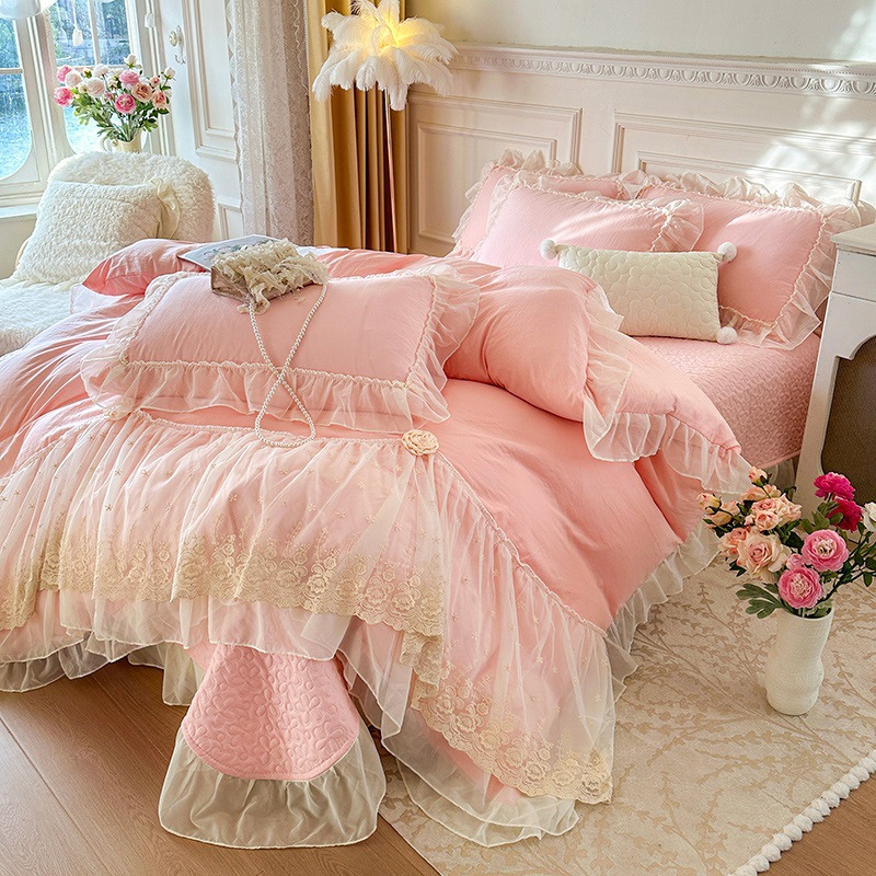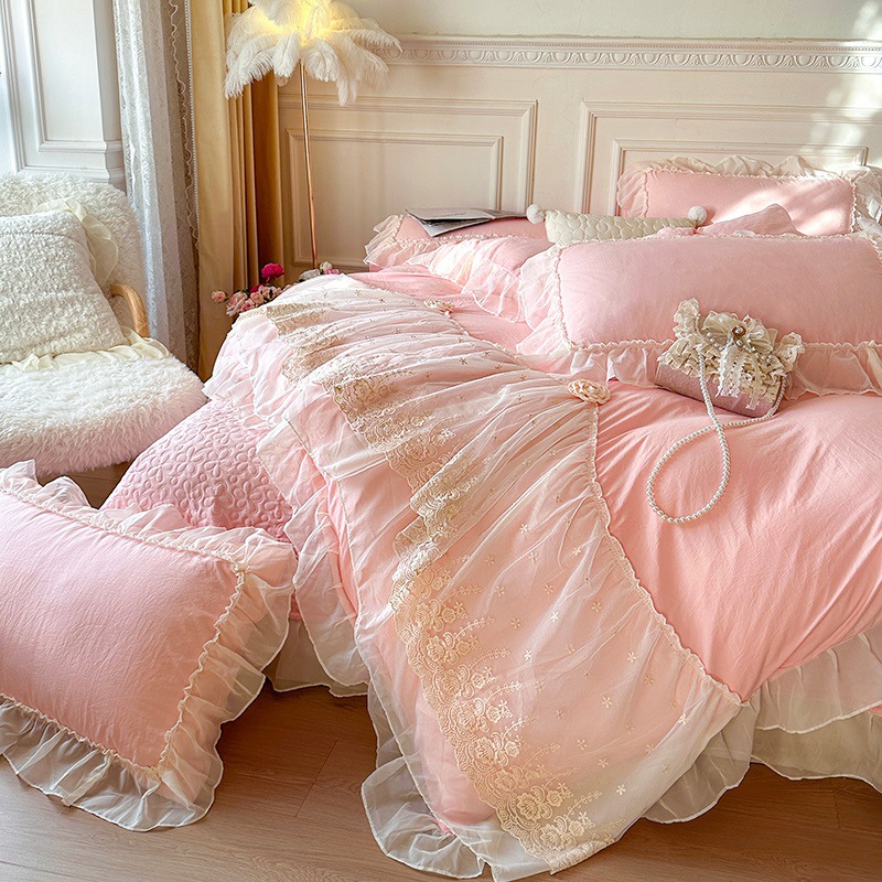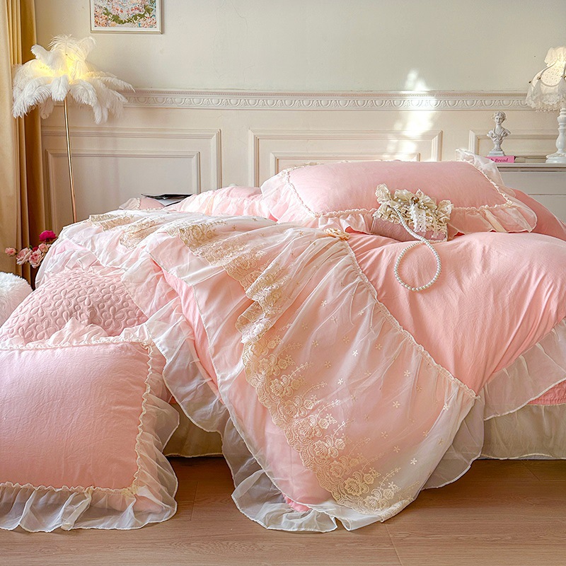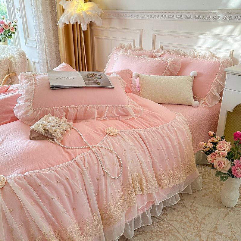 2025 새로운 프랑스 침대 커버 세척면 4 피스 세트
