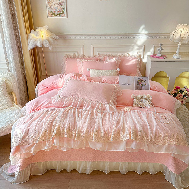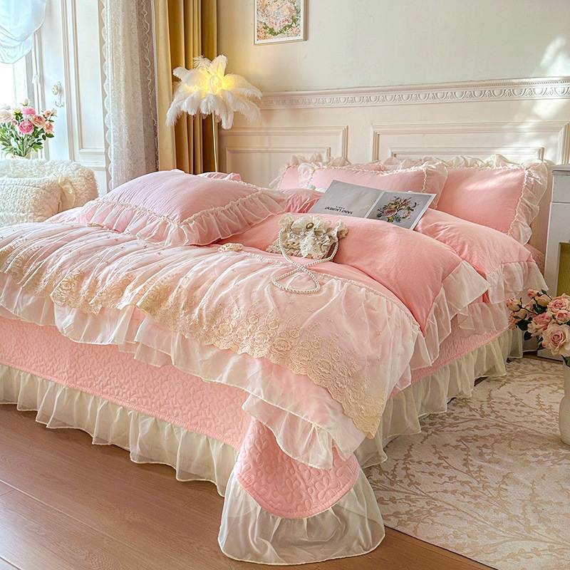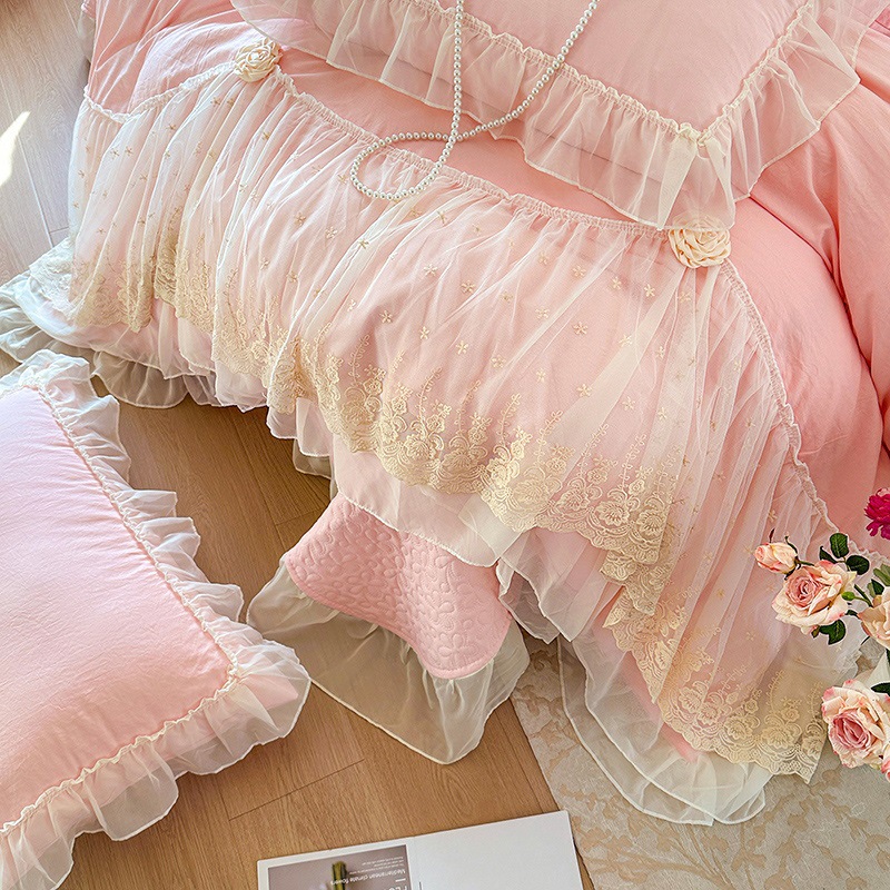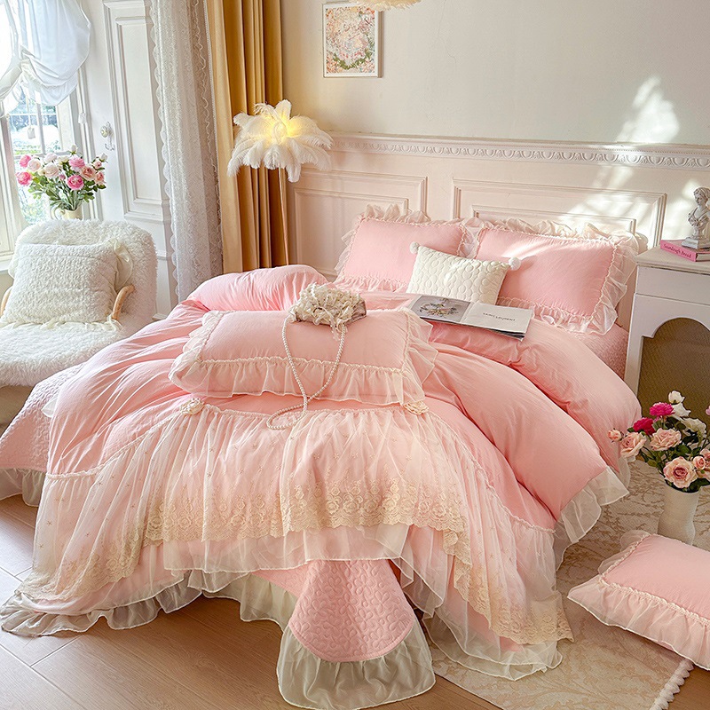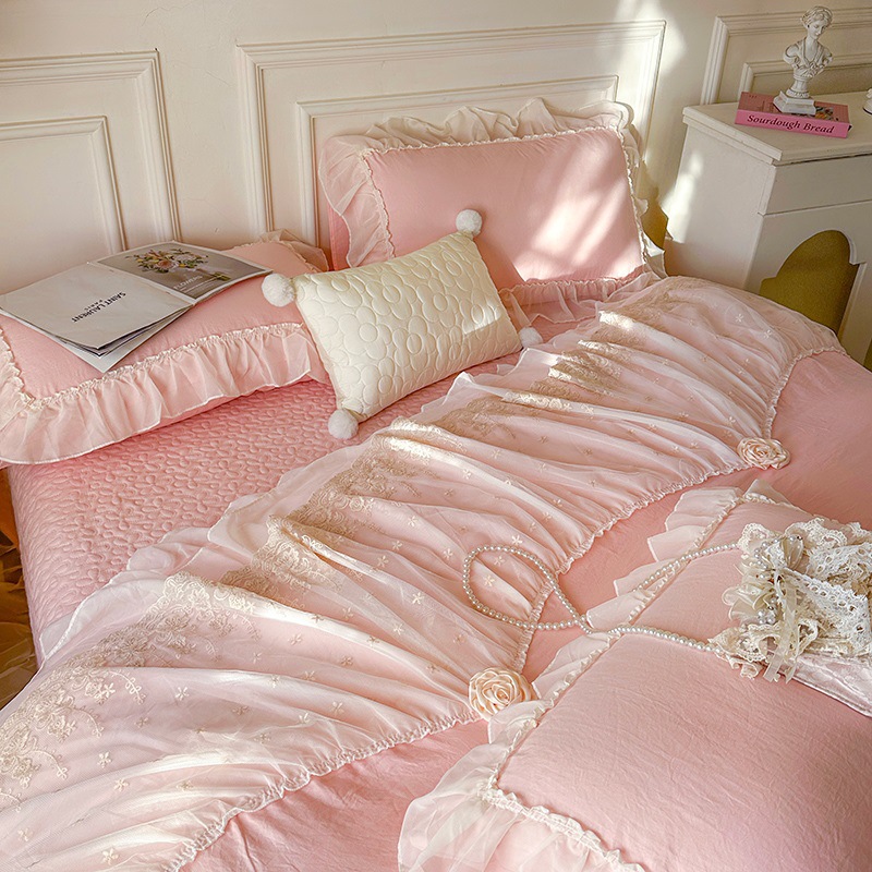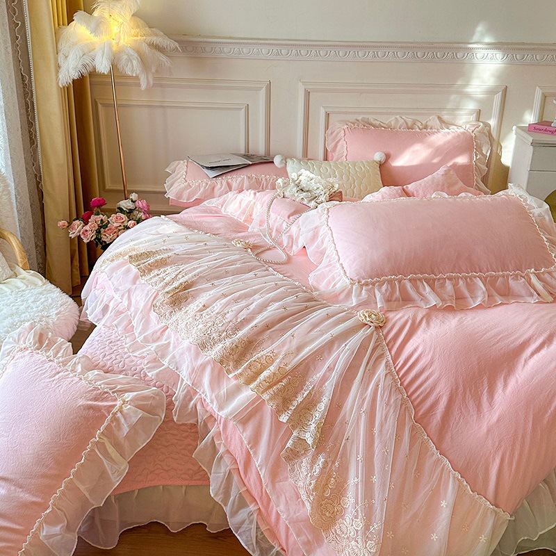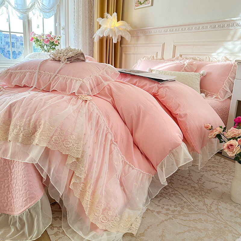 2025 새로운 프랑스 침대 커버 세척면 4 피스 세트