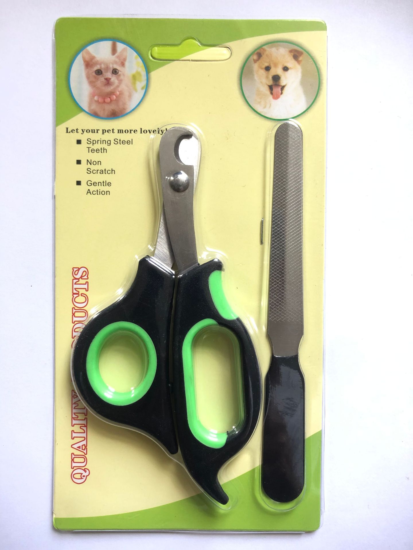• 검정색과 녹색 애완동물 가위 + 네일 파일