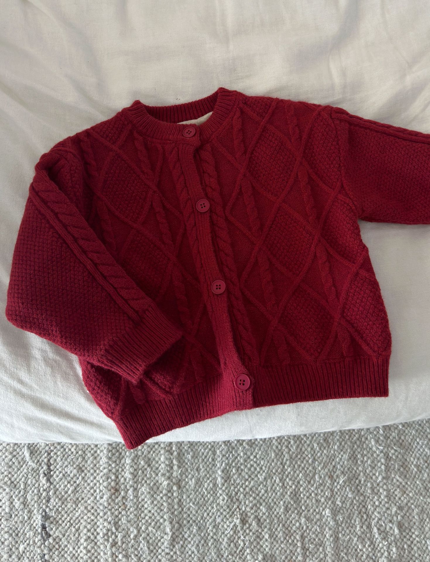 아기 남성과 여성의 한국 스타일 새로운 트위스트 카디건 스웨터 재킷 중소 어린이 두꺼운 니트 스웨터 레드 신년 서비스스토어 가기