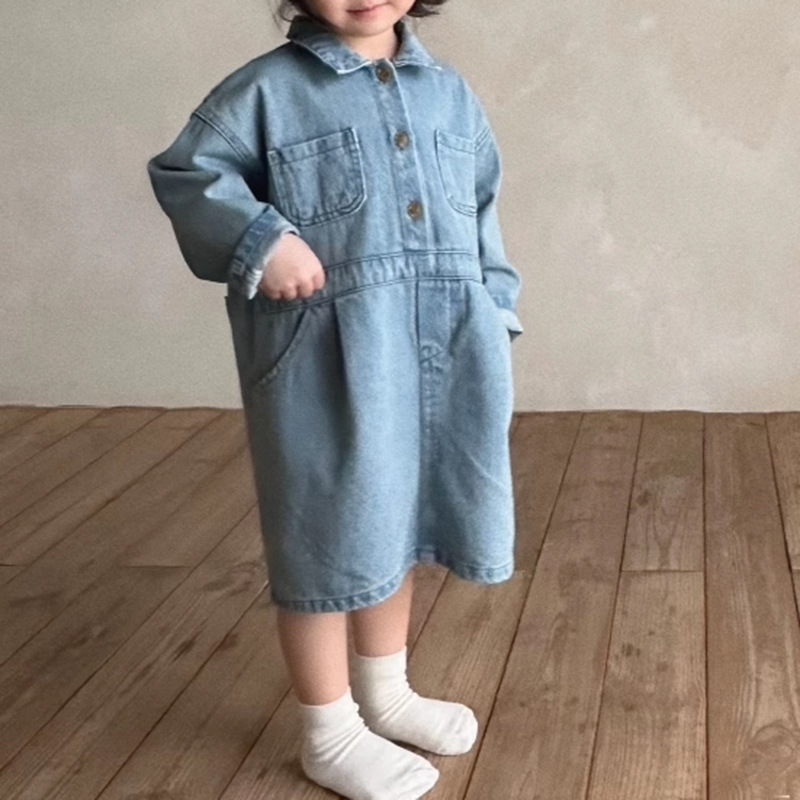 소녀 Ins 봄 새로운 한국 스타일 데님 원피스 아기 소녀 느슨한 캐주얼 귀여운 Lar 긴 소매 원피스스토어 가기