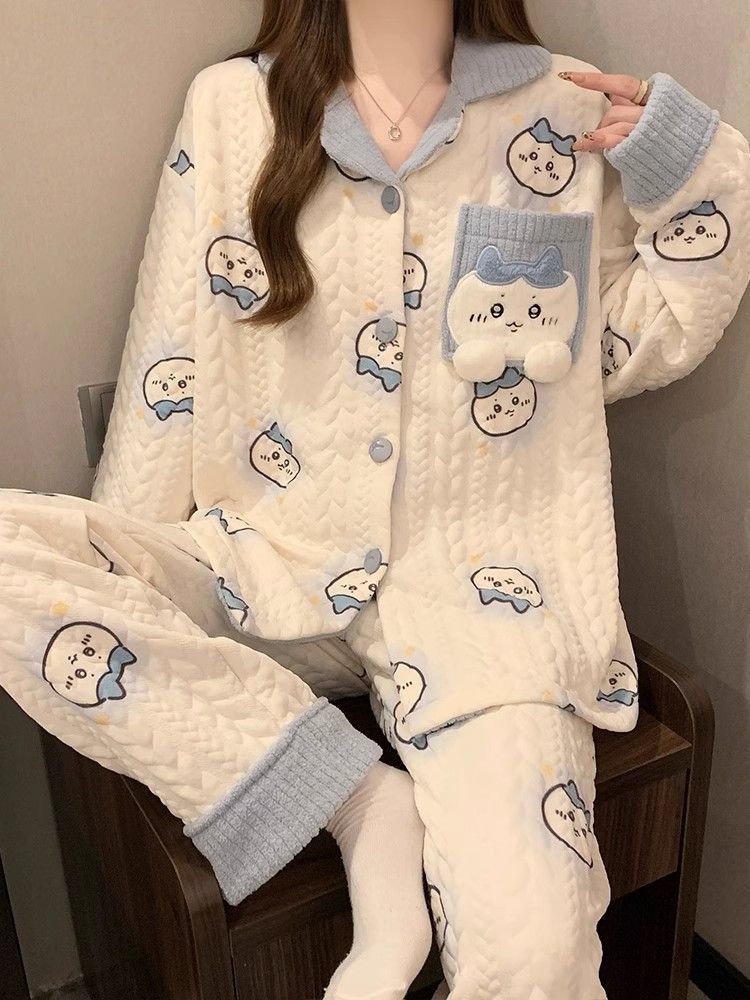 에어 코튼 파자마 만화 Jiyka 와우 작은 8 가을과 겨울 새로운 인터넷 인기 만화 만화 달콤한 두꺼운 홈 옷스토어 가기
