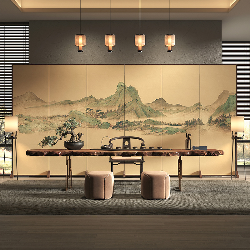 화면 파티션 새로운 중국 스타일 거실 입구 접는 모바일 간단한 직물 차폐 사무실 호텔 접이식 화면