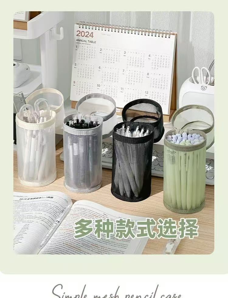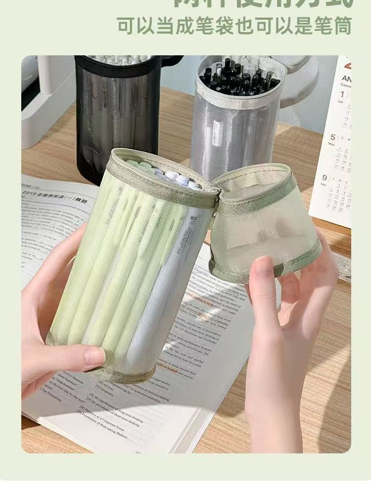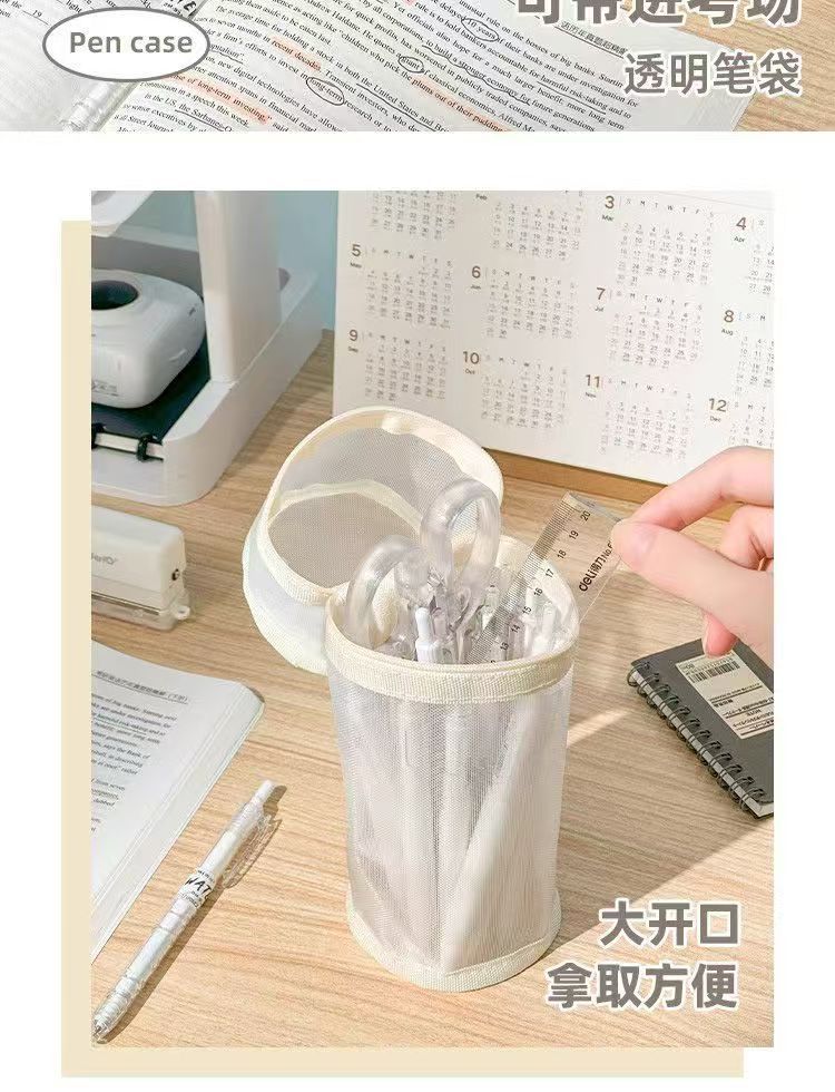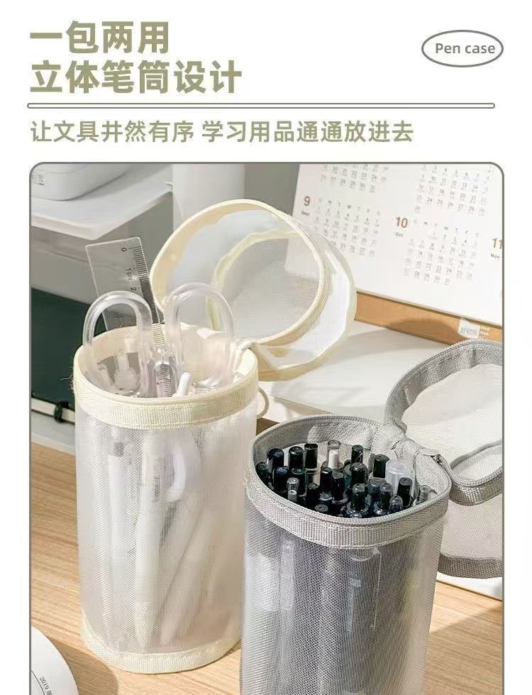 이중 목적 연필 케이스 간단한 메쉬 카트리지 연필 케이스 수직 투명 문구 가방 학생 특수 대용량 연필 케이스