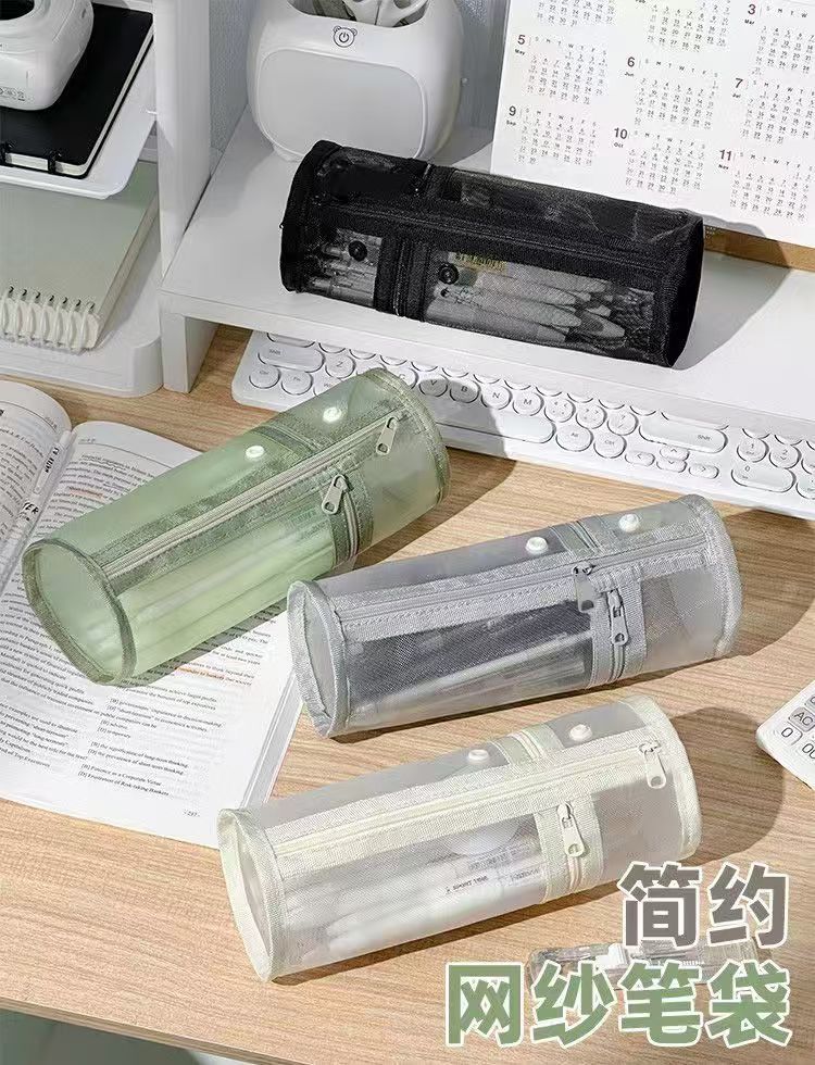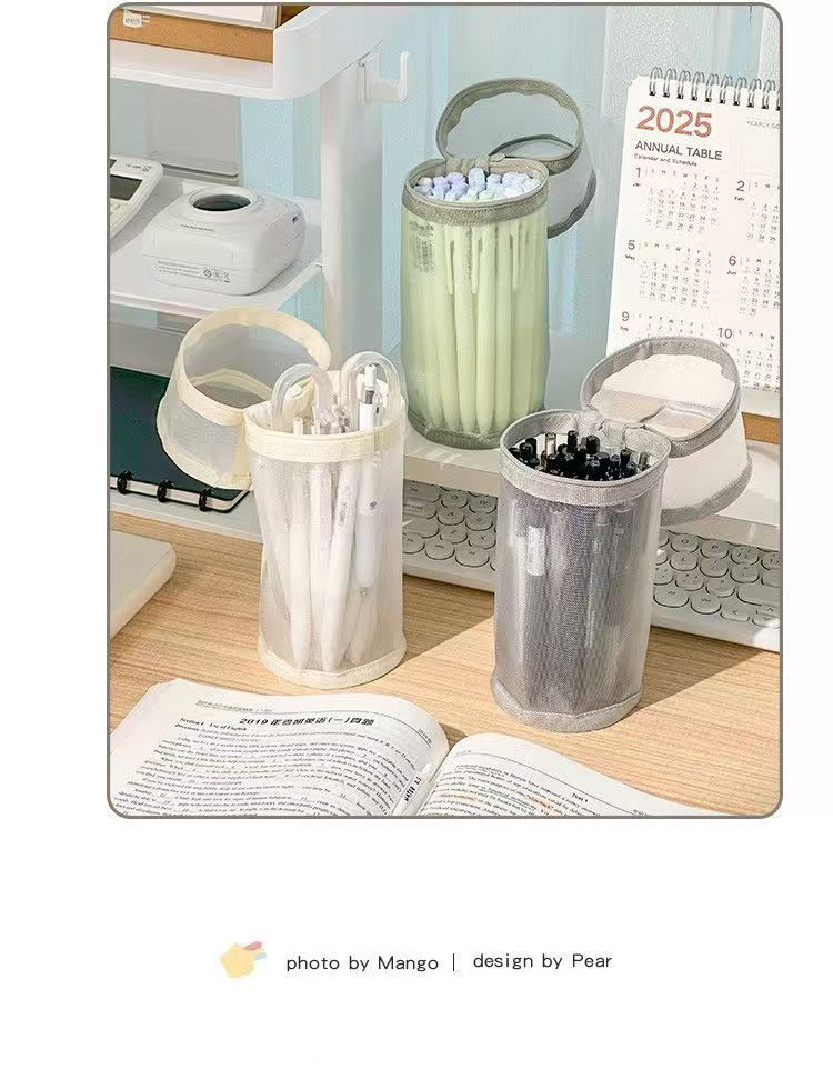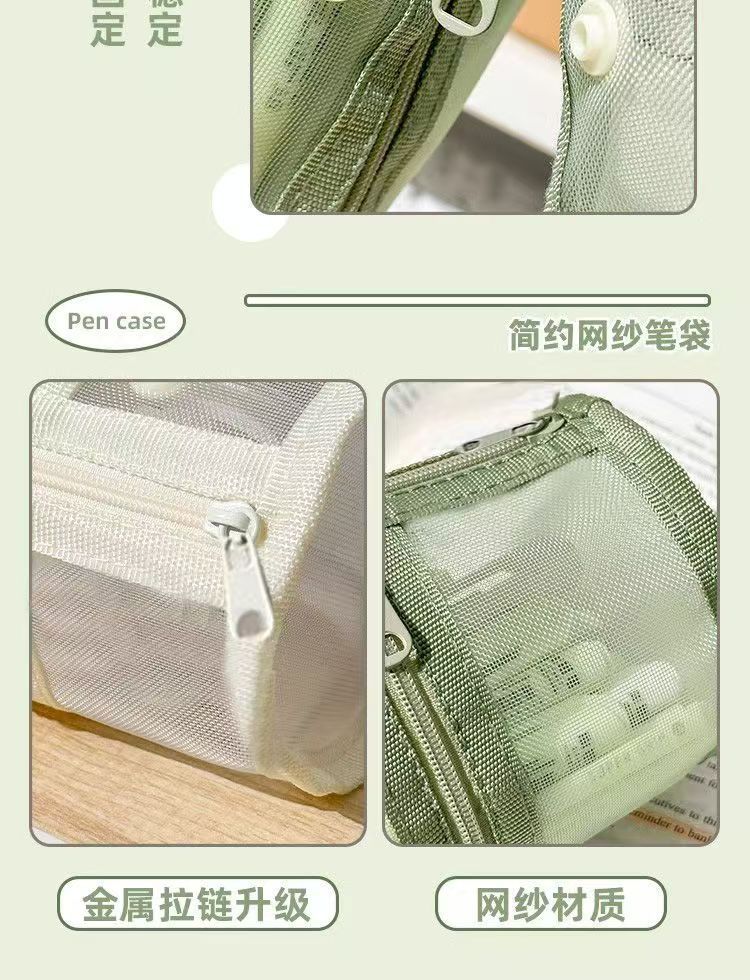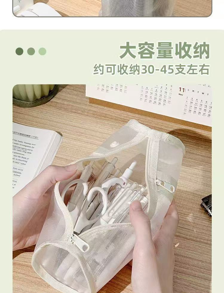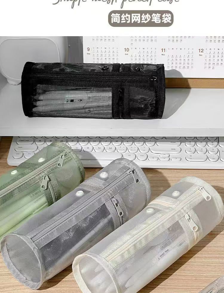 이중 목적 연필 케이스 간단한 메쉬 카트리지 연필 케이스 수직 투명 문구 가방 학생 특수 대용량 연필 케이스