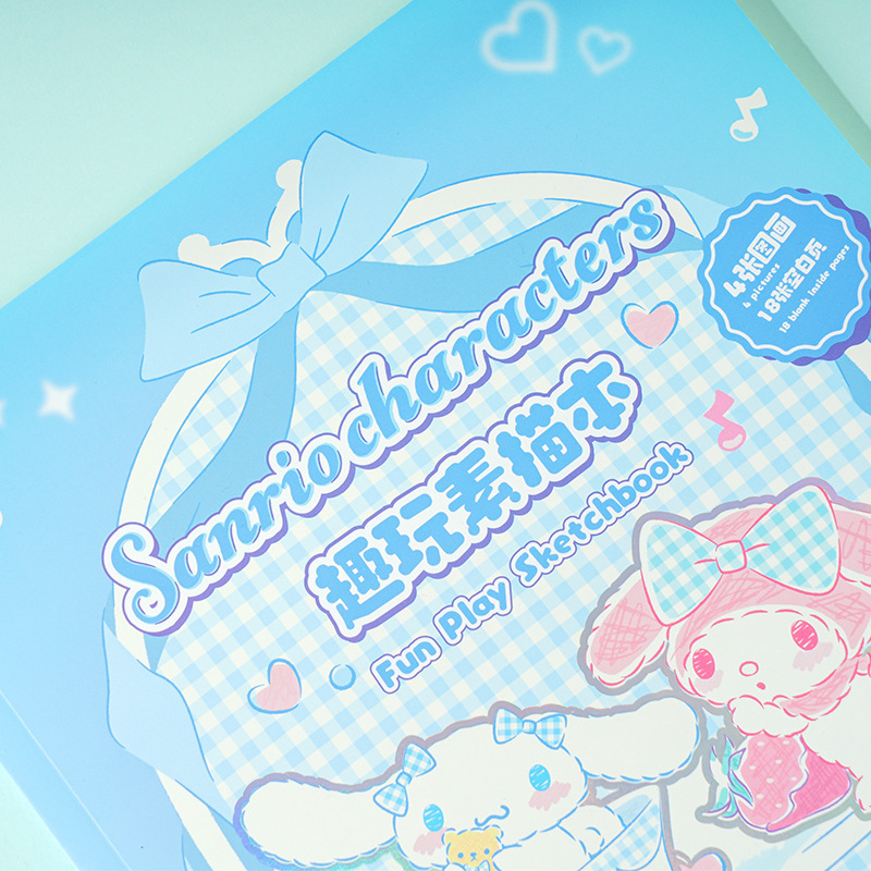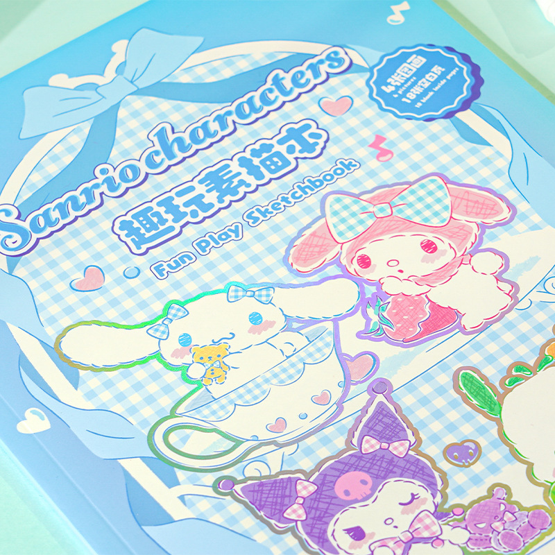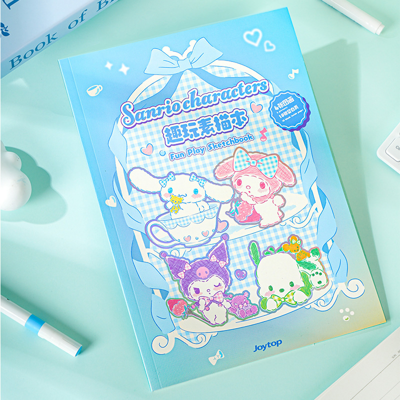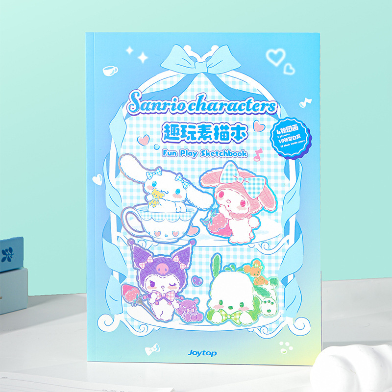 Yuemu Sanrio 높은 색상 가치 스케치 책 초등 학생을위한 만화 창조적 인 컬러 페인팅 책 귀여운 재미있는 놀이 그림책