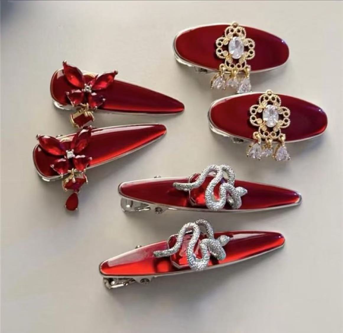 새로운 도착 실버 뱀 나비 타원형 빨간 새해 머리핀 여성 사이드 클립 방귀 헤어 액세서리 빛 럭셔리 하이 엔드 헤드폰