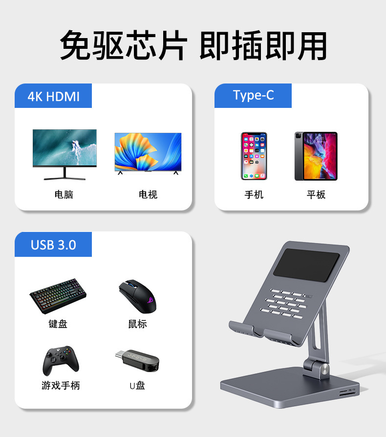 7-in -1 도킹 스테이션 태블릿 스탠드 알루미늄 합금 이어폰 구멍 USB3.0 태블릿 스탠드스토어 가기