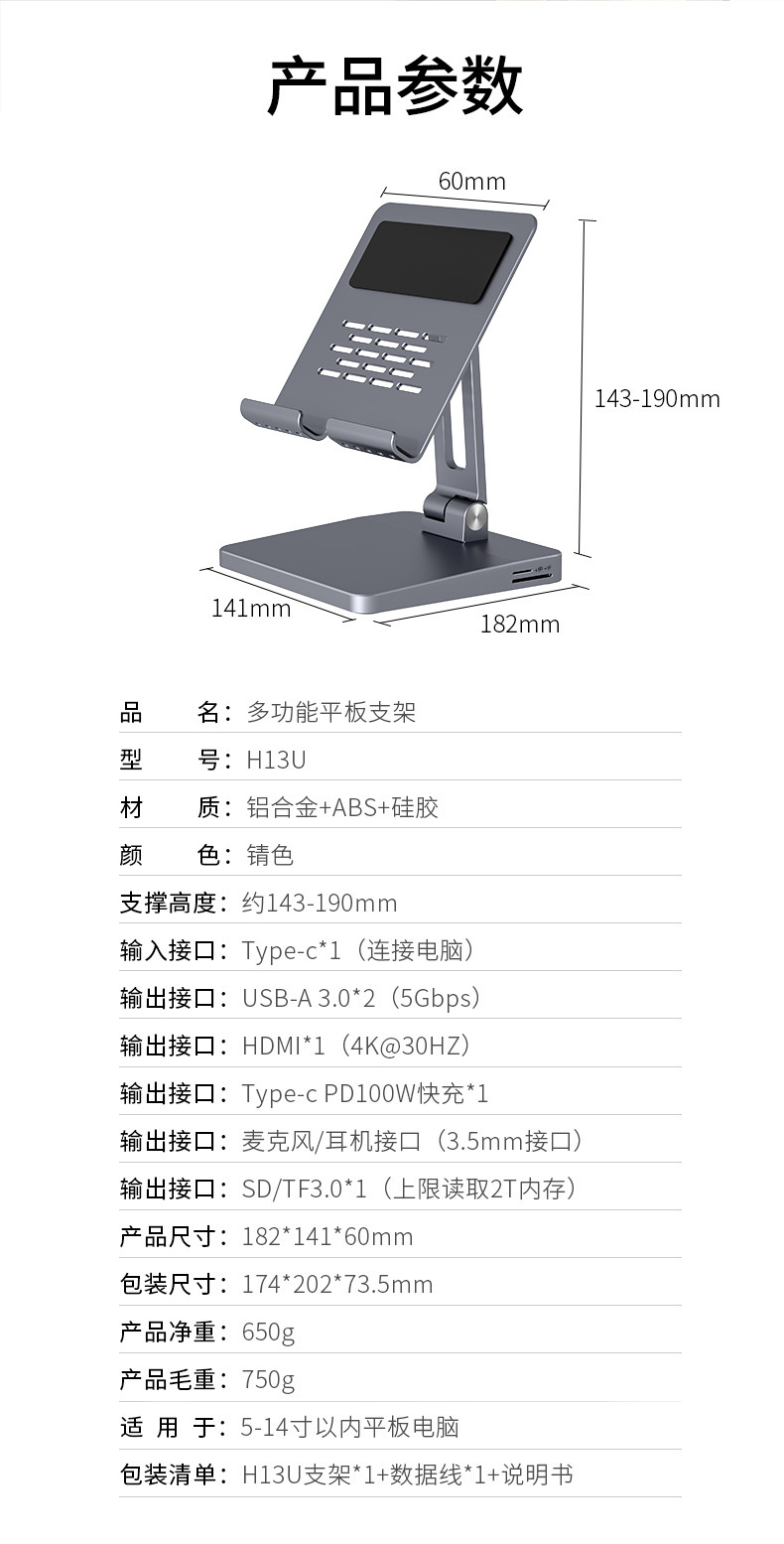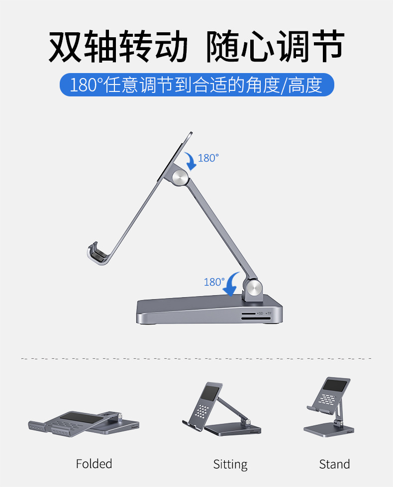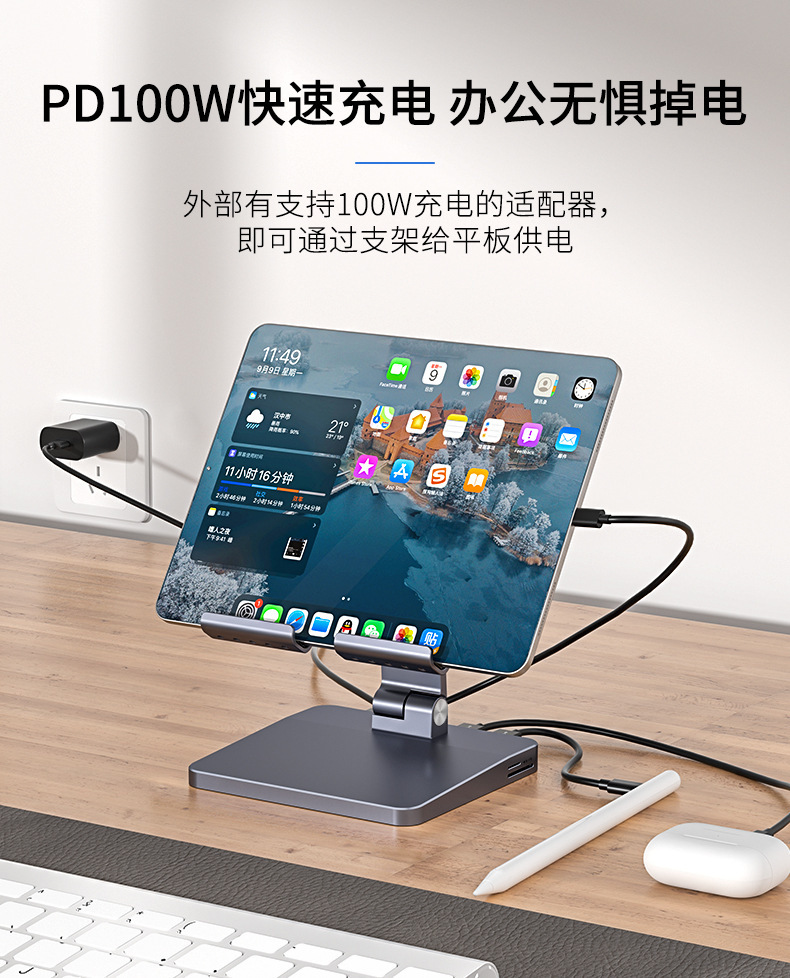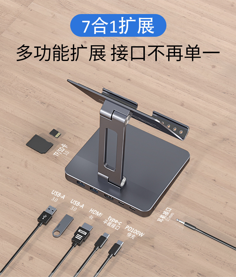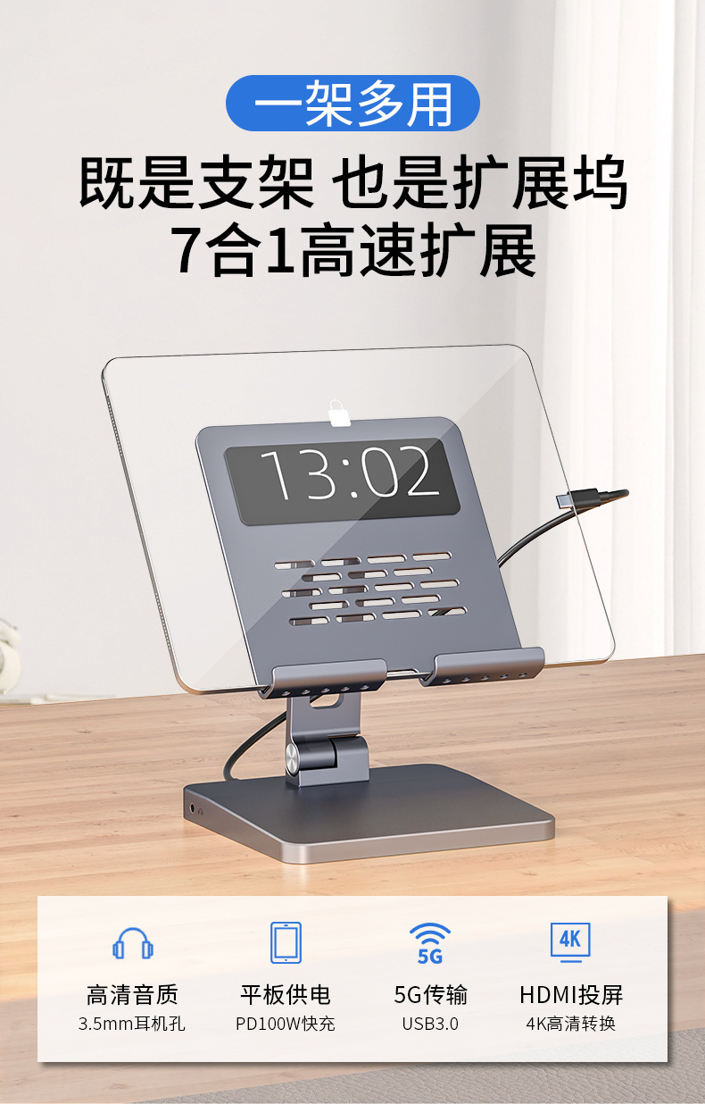 7-in -1 도킹 스테이션 태블릿 스탠드 알루미늄 합금 이어폰 구멍 USB3.0 태블릿 스탠드