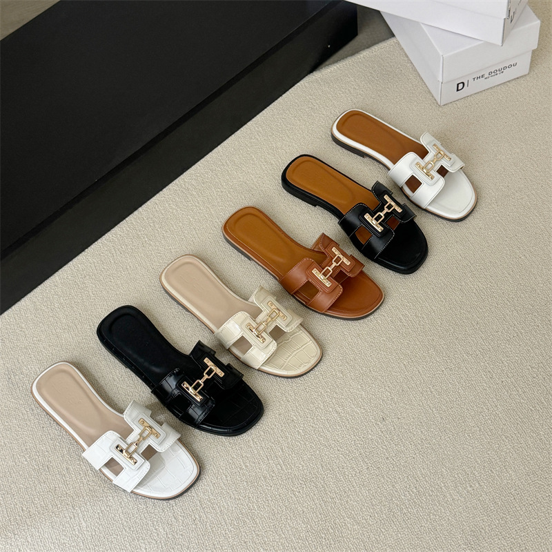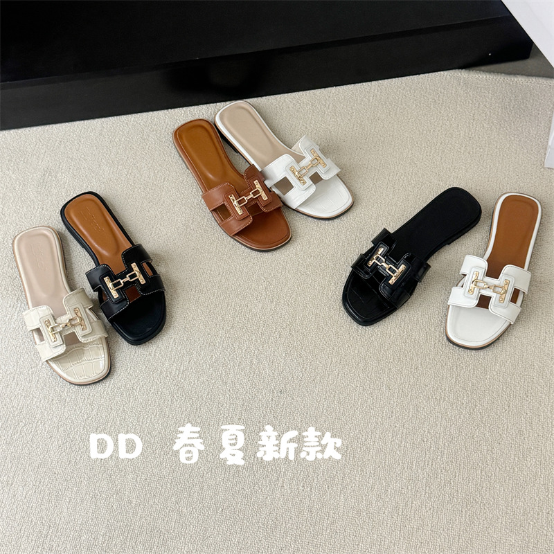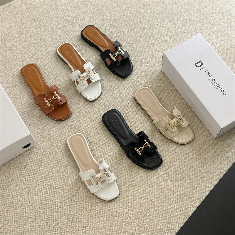 슬리퍼 여성 여름 의류 유행 진짜 가죽 밀짚 플랫 스퀘어 발가락 샌들 휴가 한 단어 샌들스토어 가기