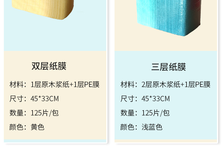 • 2겹 1팩[일반 스타일] 노란색 125개/팩 33*45CM