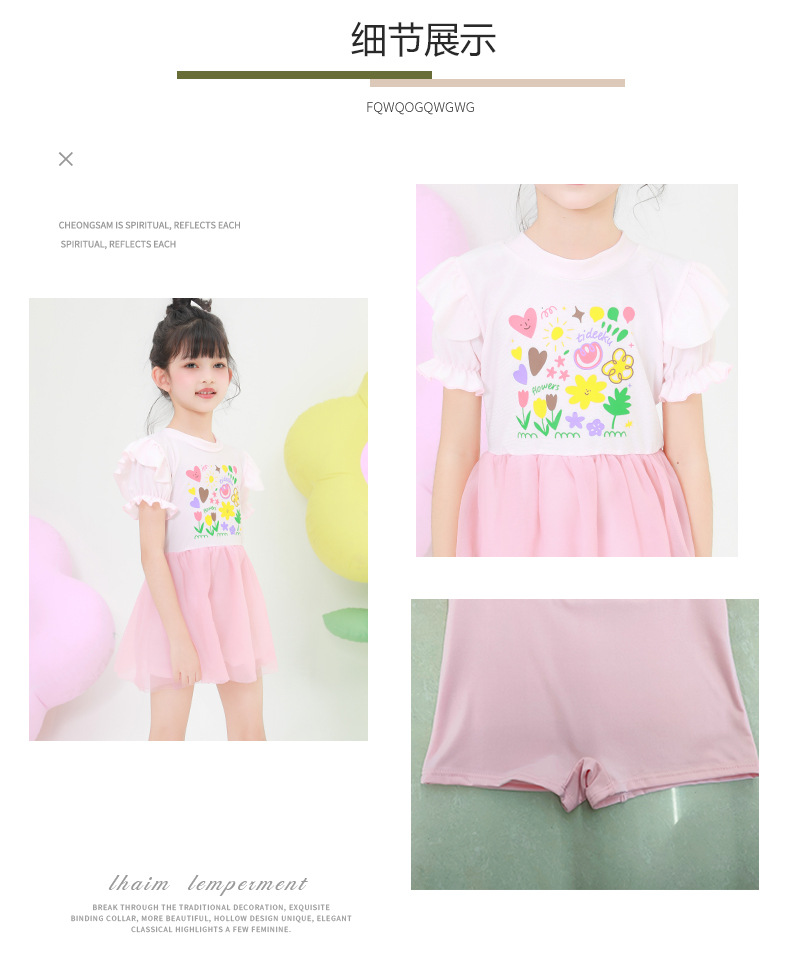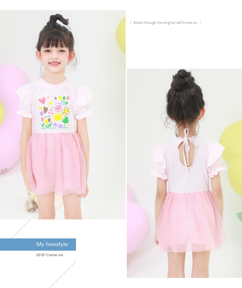 어린이 수영복 소녀 어린이 폴리 에스터 원피스 어린 소녀 귀여운 인쇄 작은 신선한 스커트 온천 수영복 도매