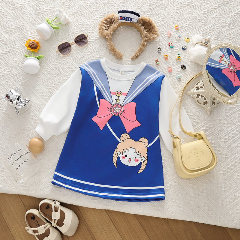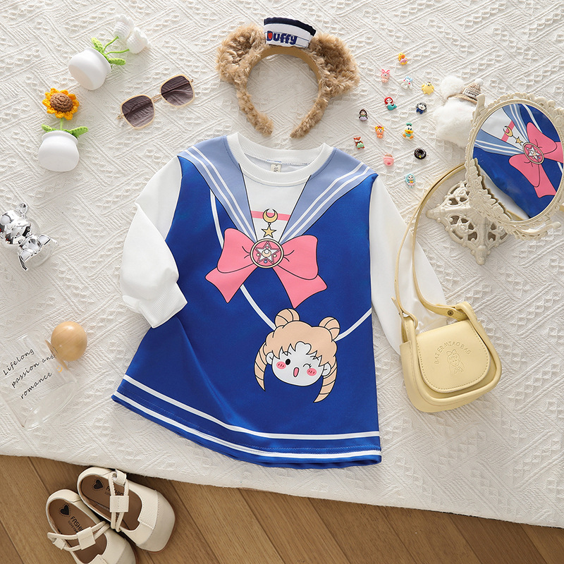 어린이 아름다운 소녀의 가짜 두 조각 스웨트 원피스 봄과 가을 새로운 어린이 착용 소녀의 아기 활 서양식 긴 소매스토어 가기