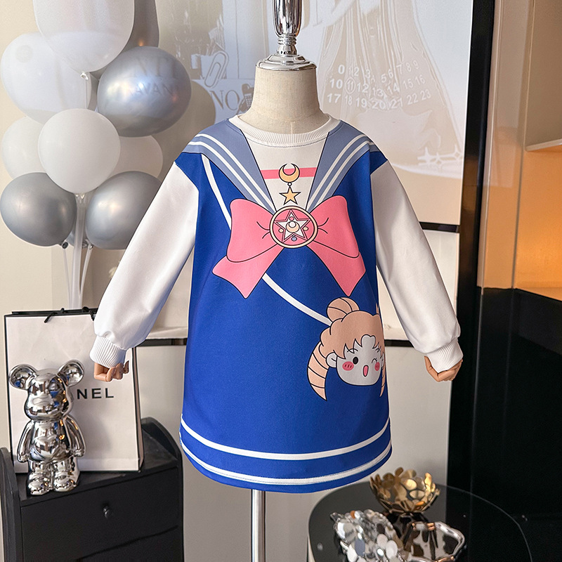 어린이 아름다운 소녀의 가짜 두 조각 스웨트 원피스 봄과 가을 새로운 어린이 착용 소녀의 아기 활 서양식 긴 소매