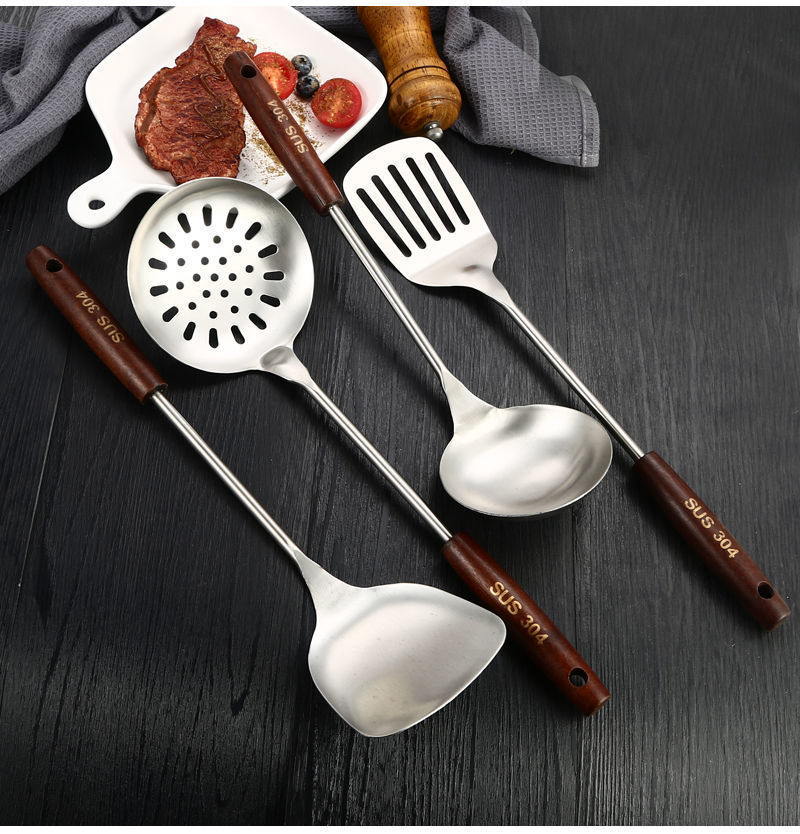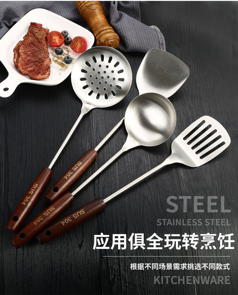 304 스테인레스 스틸 냄비 삽 볶음 얇게 볶은 철 삽 볶음 스펀 스푼 소란 더 가정용 주방용품 세트 손잡이
