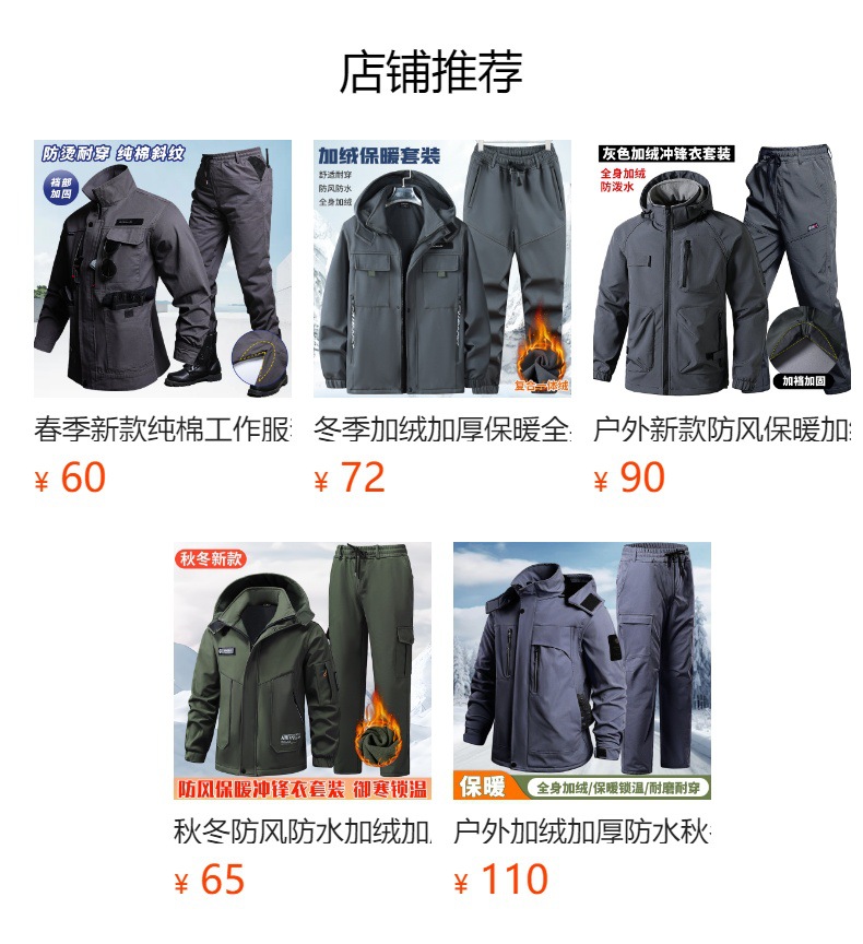 가을과 겨울 기모 남성용 툴링 방수 충전 의류 느슨한 내마모성 유행 등반 캐주얼 멀티 포켓 노동 세트스토어 가기