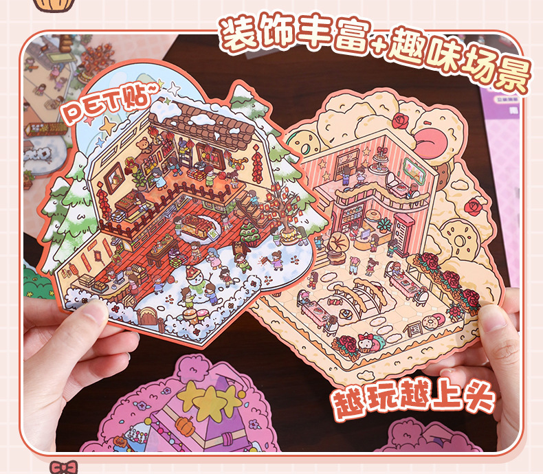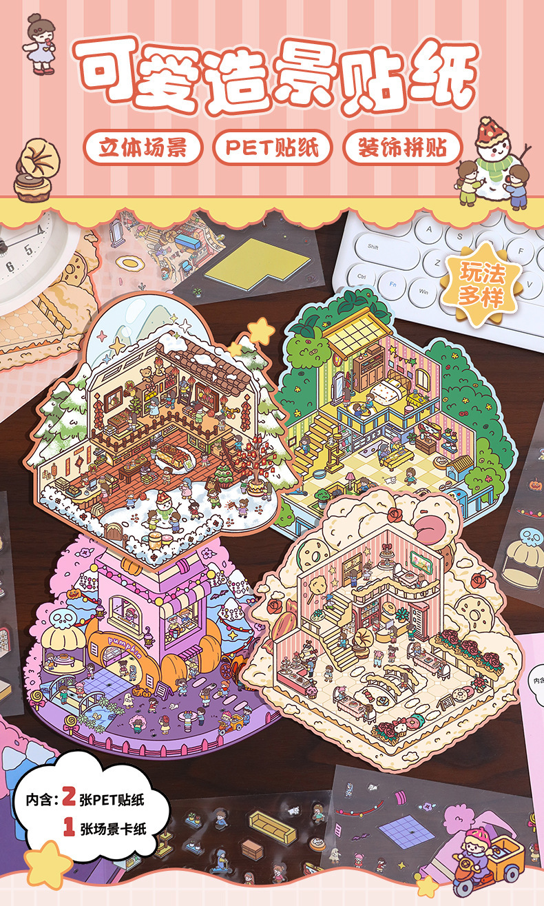 만화 스몰 사이즈 조경 스티커 창조적 인 미니어처 장면 콜라주 DIY 조경 콜라주 3D 입체 손 계정 스티커스토어 가기