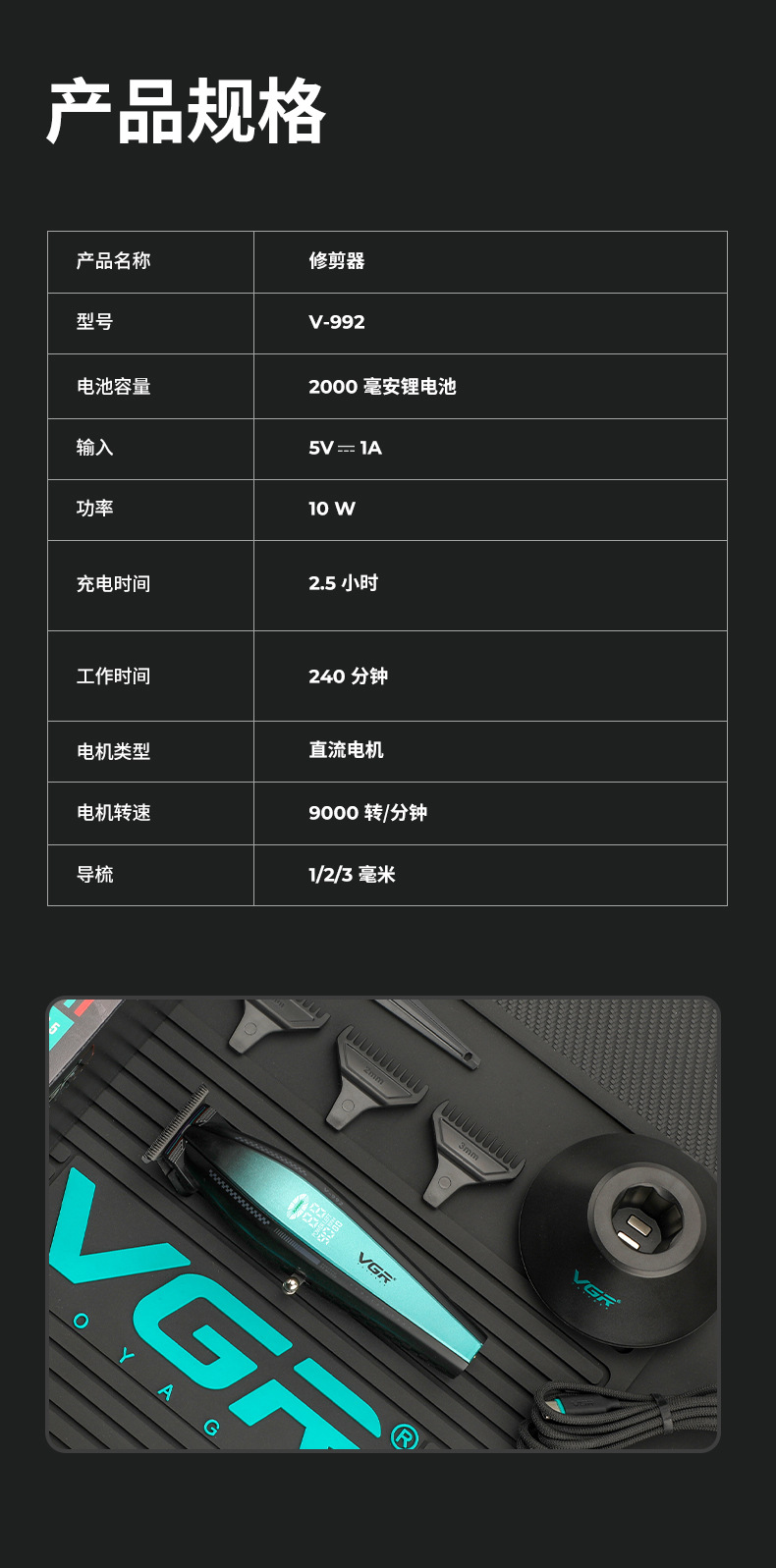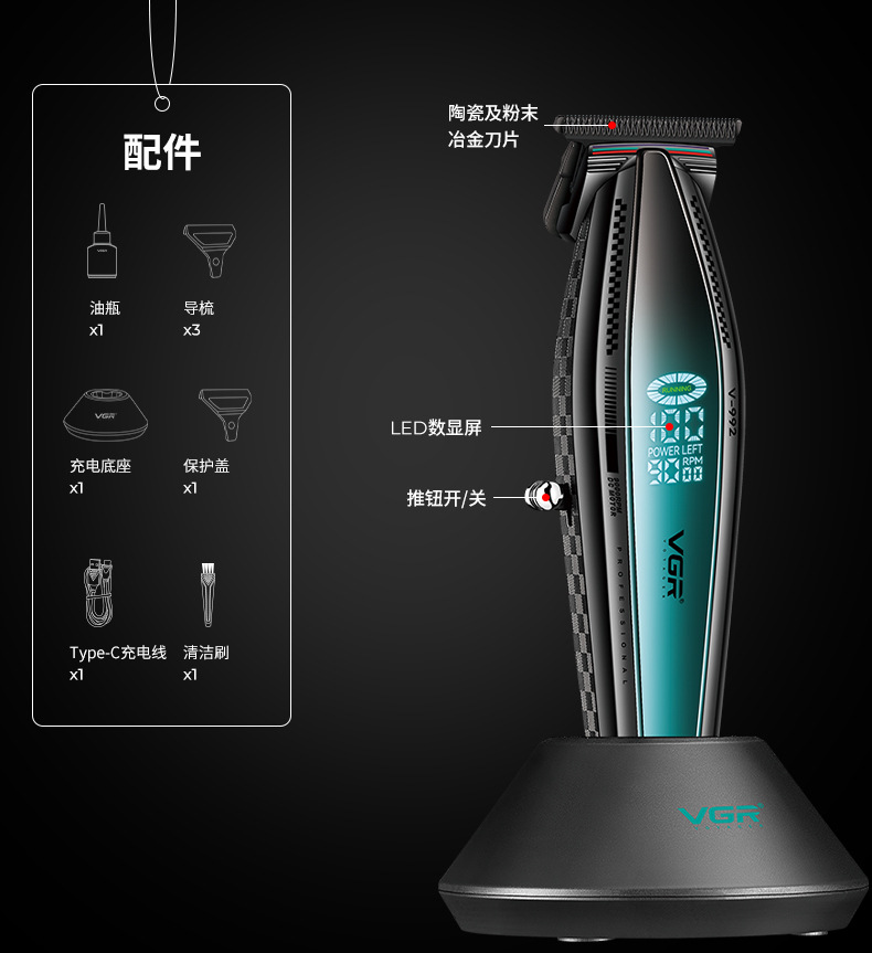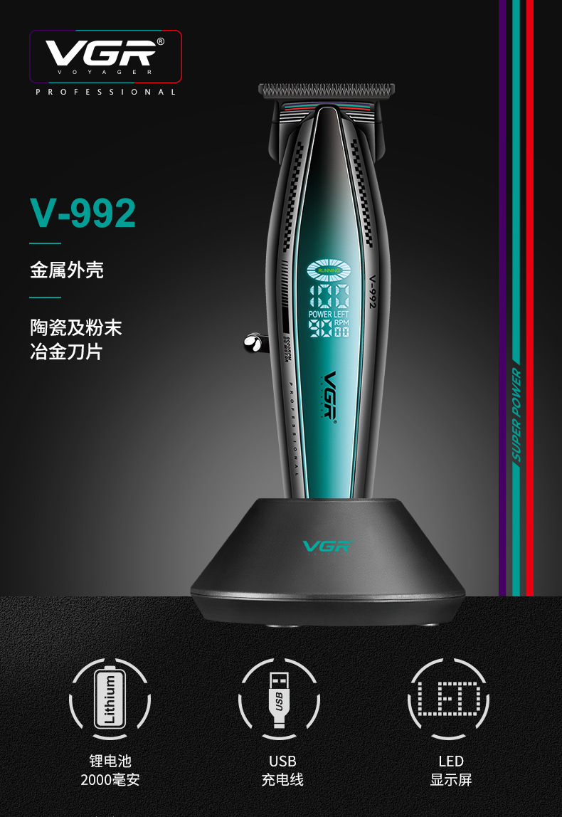 VGR992 새로운 국경 간 헤어 클리퍼 디지털 헤어 살롱 전문 오일 헤드 클리퍼 베이스 충전 전기 클리퍼