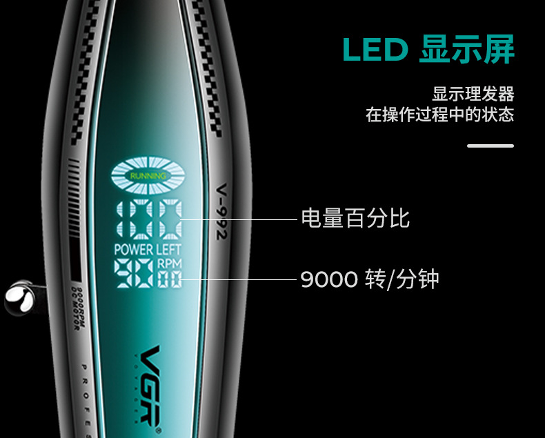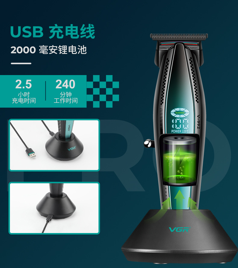 VGR992 새로운 국경 간 헤어 클리퍼 디지털 헤어 살롱 전문 오일 헤드 클리퍼 베이스 충전 전기 클리퍼스토어 가기