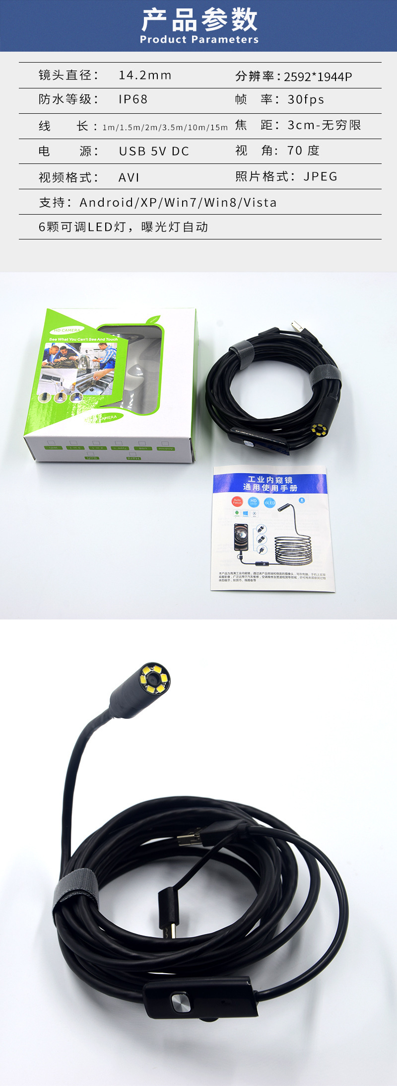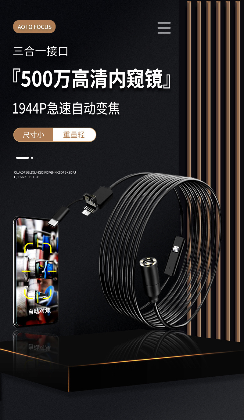 3 인 5 백만 자동 초점 HD 산업용 카메라 자동 수리 탄소 파이프 감지 방수 내시경스토어 가기