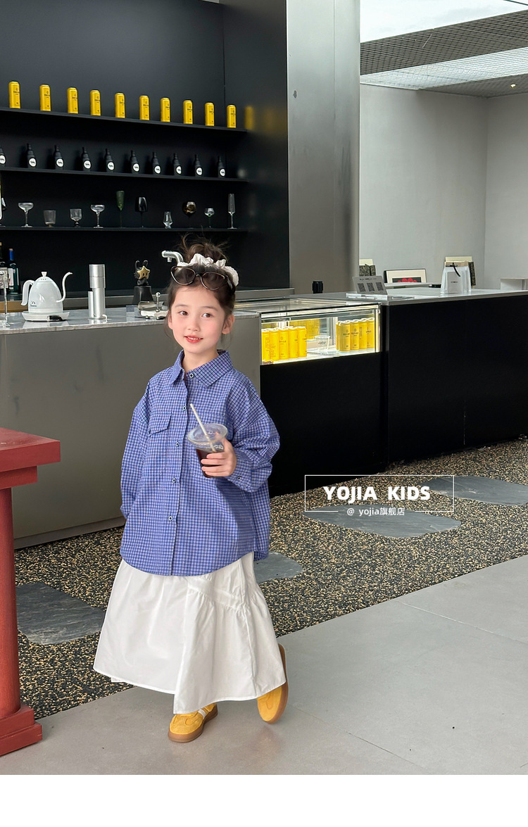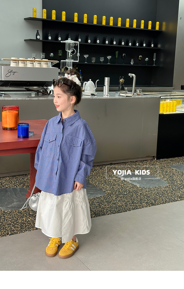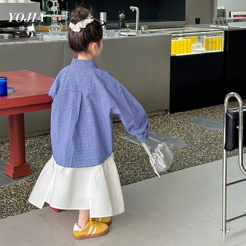 YOJIA 소녀 셔츠 봄 2025 새 한국어 버전의 느슨한 어린이 셔츠 긴팔 어린이 스프링 코트 얇은