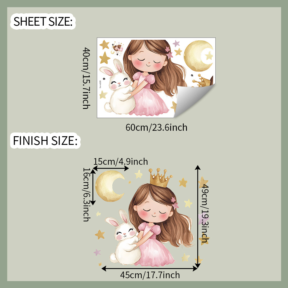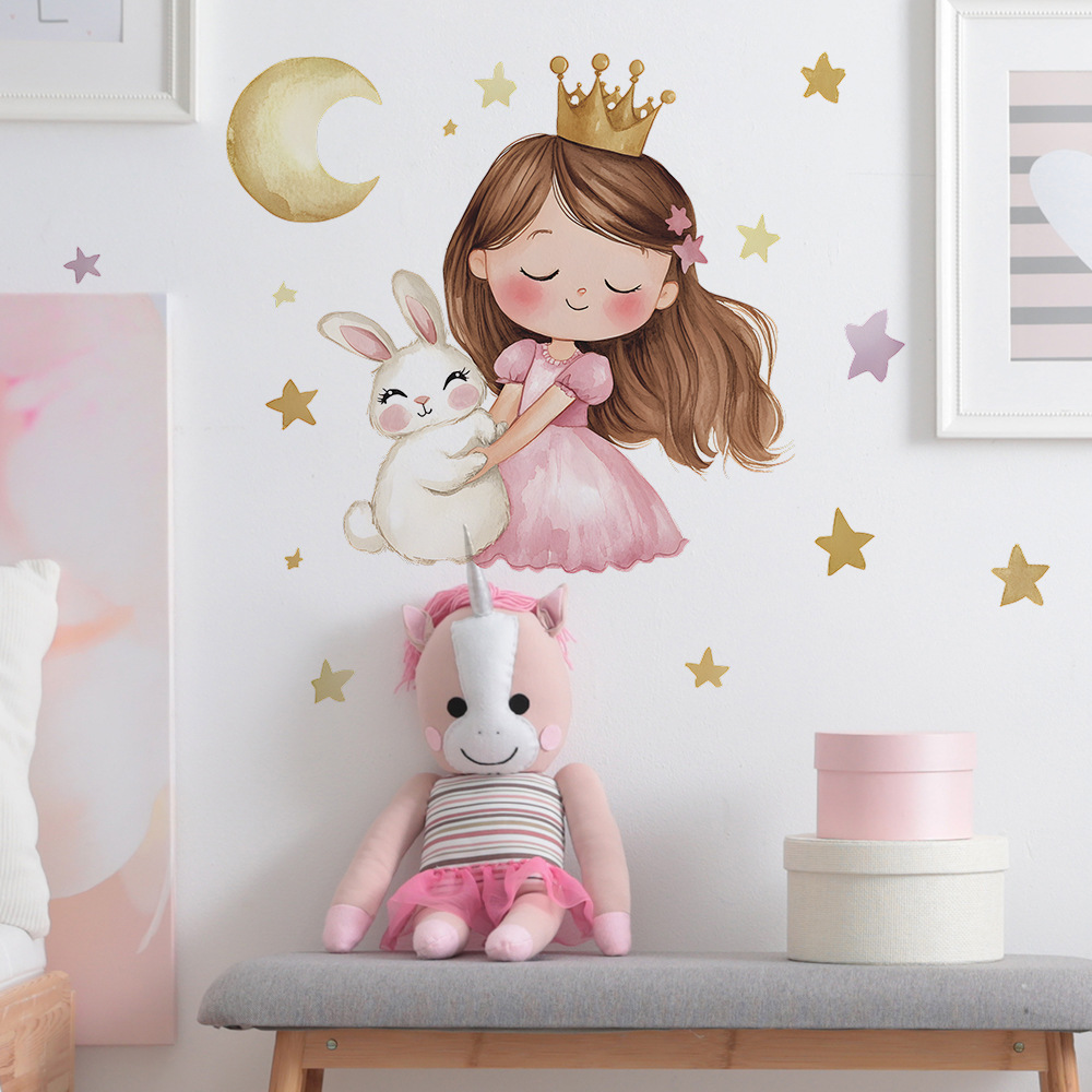Fun-e228 만화 작은 공주 토끼 침실 거실 집 배경 미화 장식 벽 스티커 도매