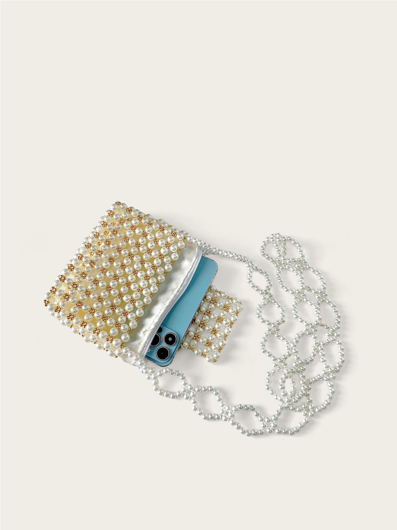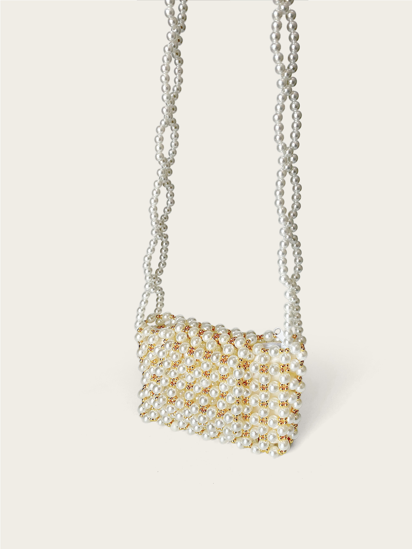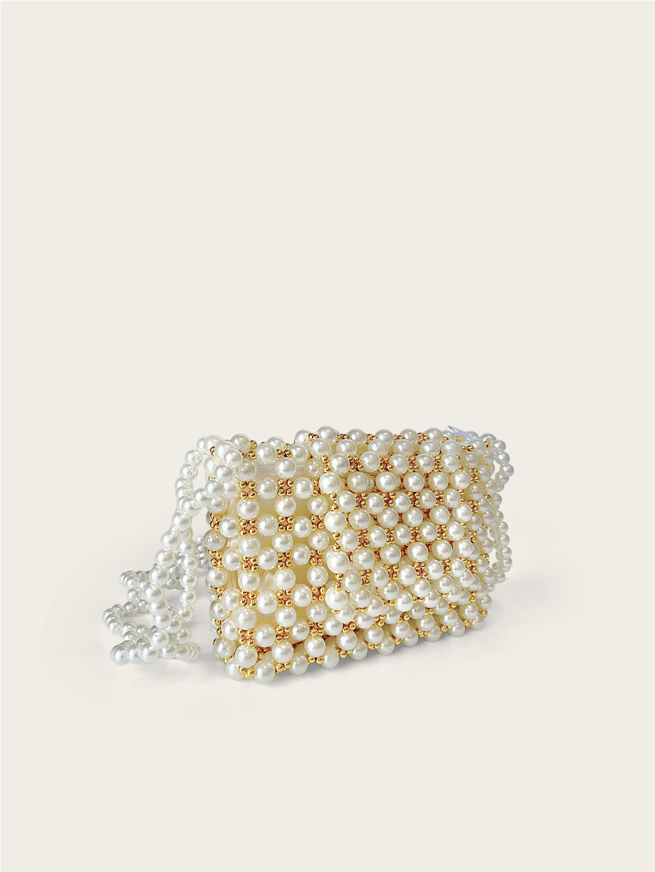 Ins 스타일 요정 진주 가방 황금 프랑스 소녀 어깨 가방 캐주얼 수제 구슬 가방