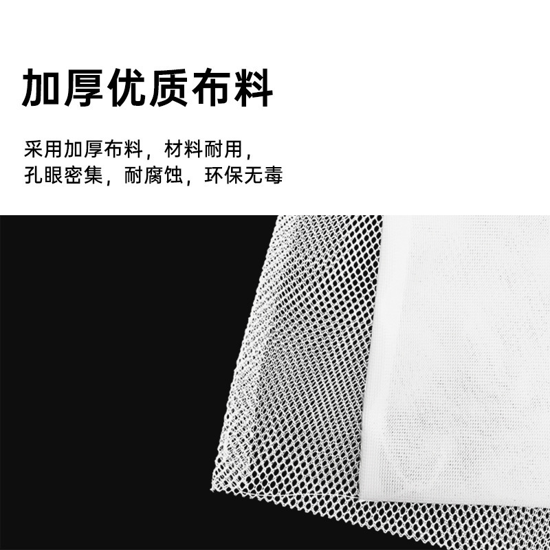 本品采用耐腐蚀的涤纶材料精致而成,袋口设有优质拉链,平时清洗维护非常方便。使用时将滤材装入网袋后在放入过滤槽内,更换或清洗直接连网袋提出即可。