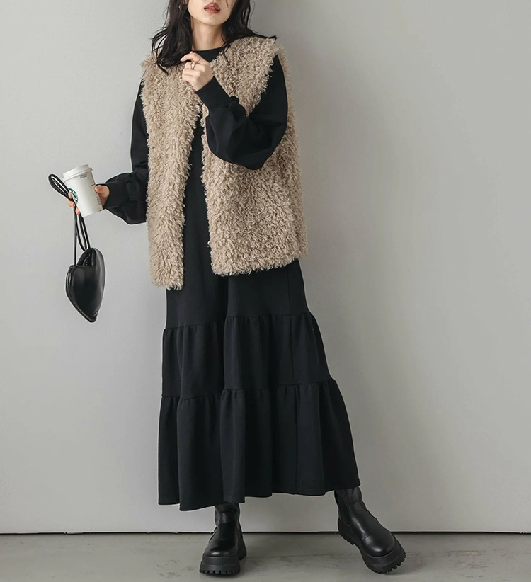 일본 가을 여성복 루즈핏 미디 기장 스플라이스 러플 스커트 스웨트셔츠 원피스 긴팔 무릎 아래 롱스커트스토어 가기