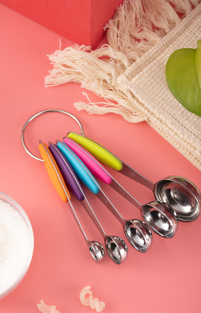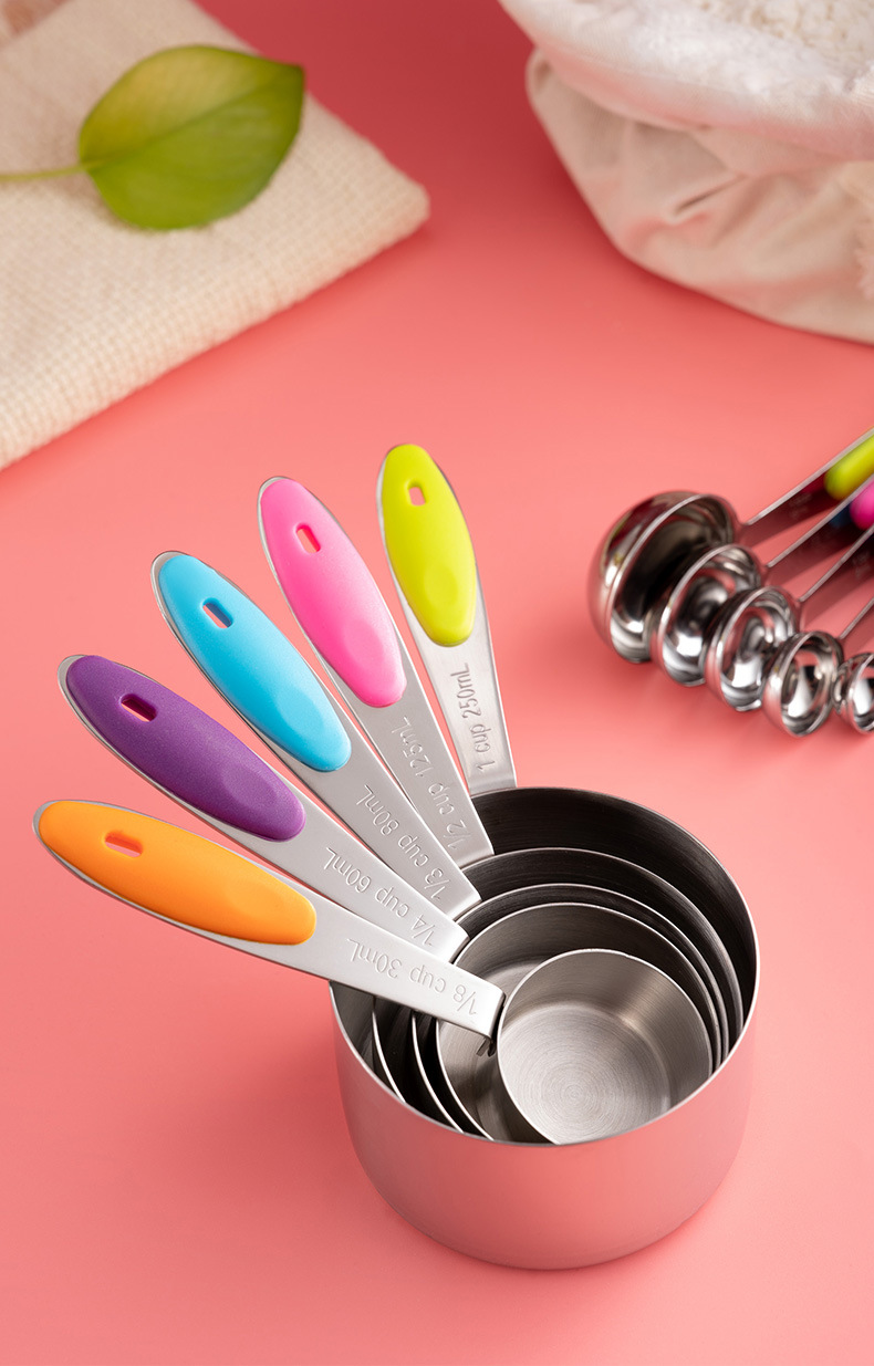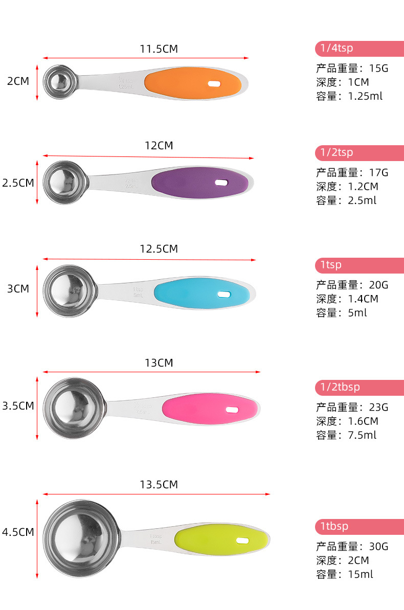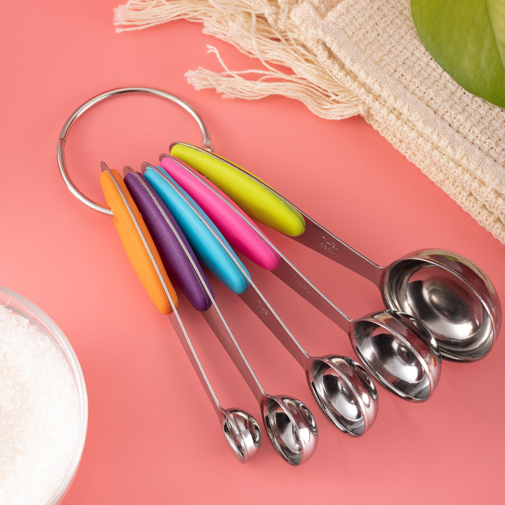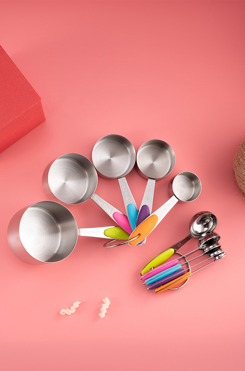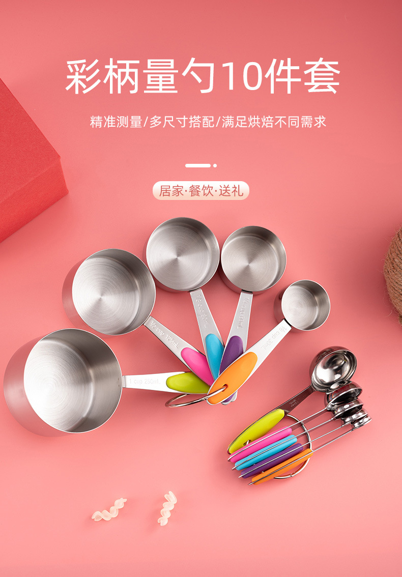 스테인레스 스틸 컬러 실리콘 핸들 측정 숟가락 측정 컵 10 조각 세트 베이킹 측정 숟가락 세트 조미료 숟가락 수량 더스토어 가기