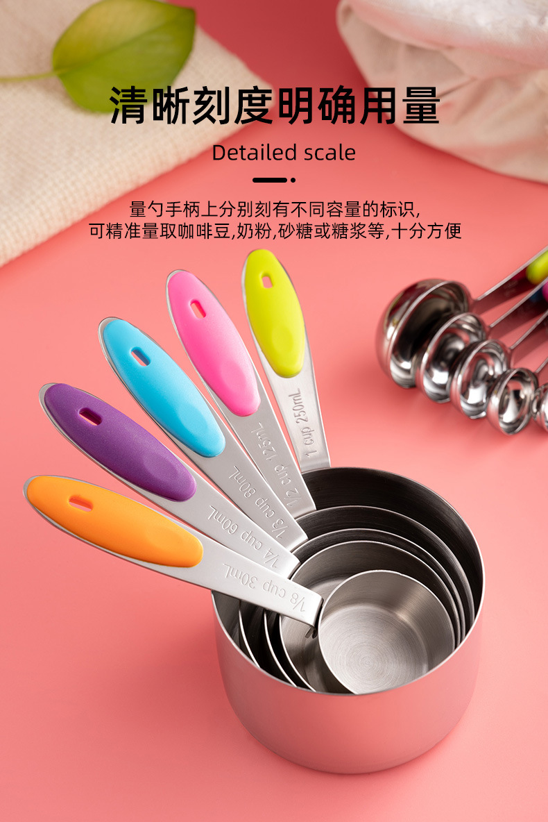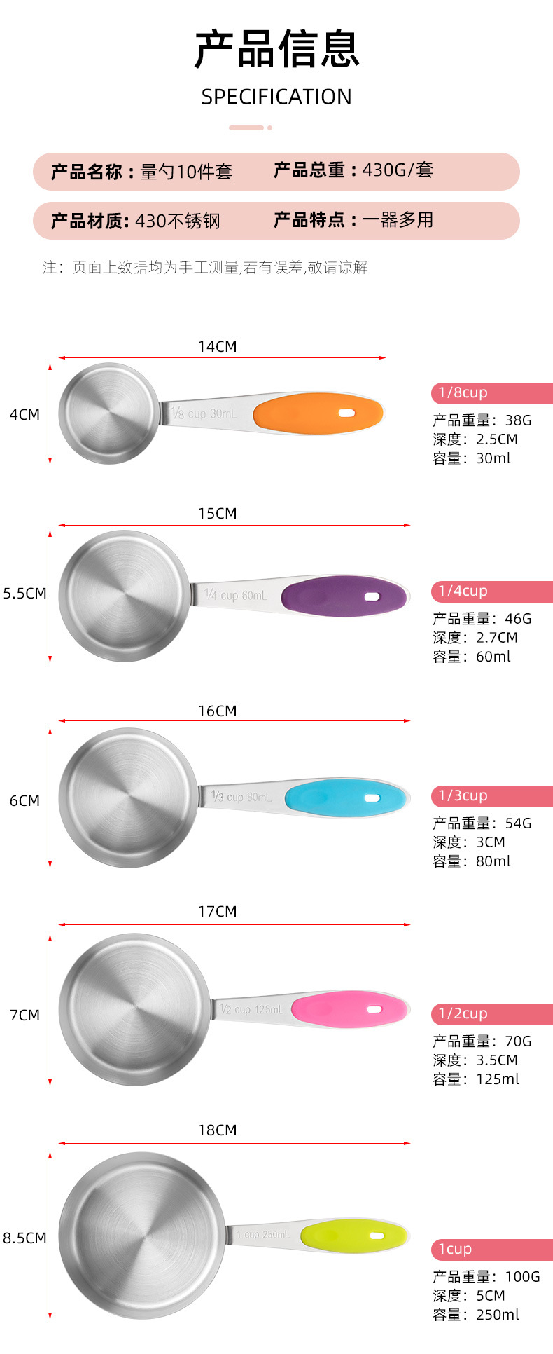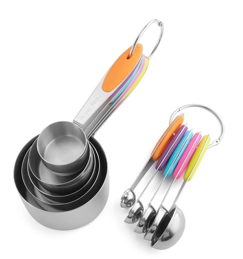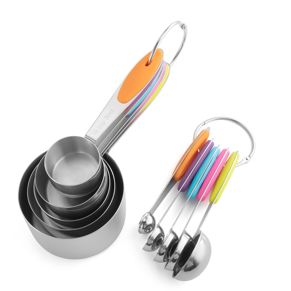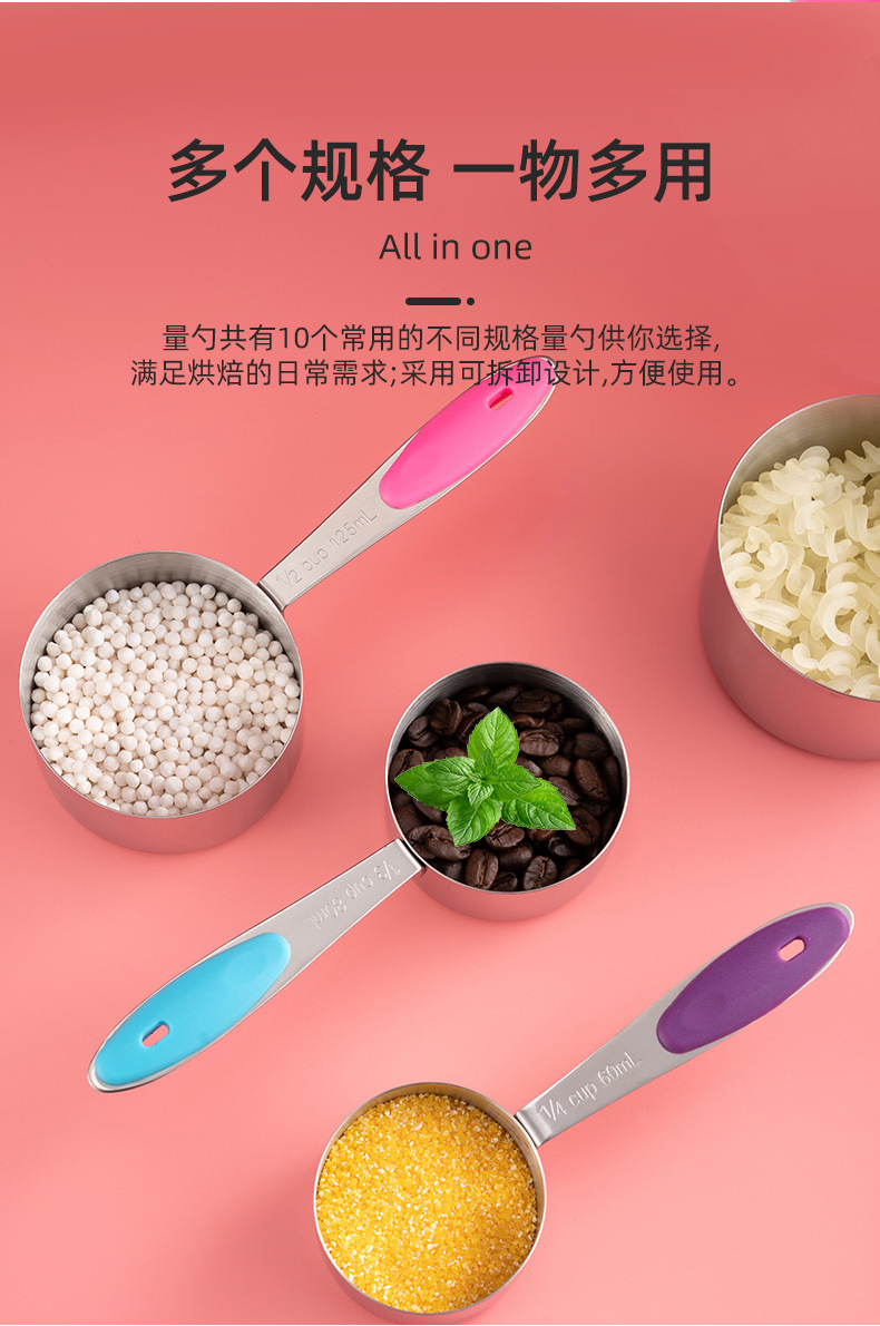 스테인레스 스틸 컬러 실리콘 핸들 측정 숟가락 측정 컵 10 조각 세트 베이킹 측정 숟가락 세트 조미료 숟가락 수량 더