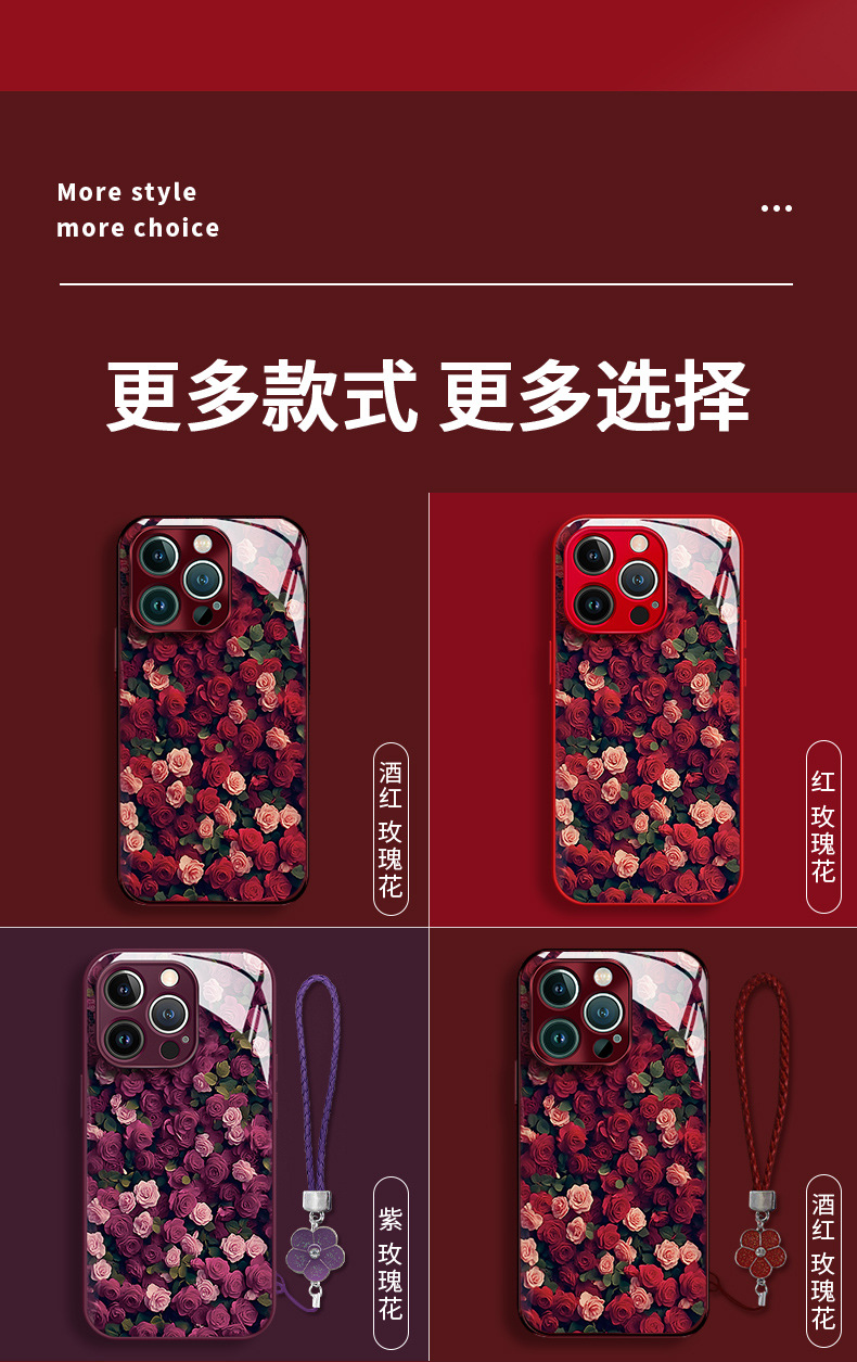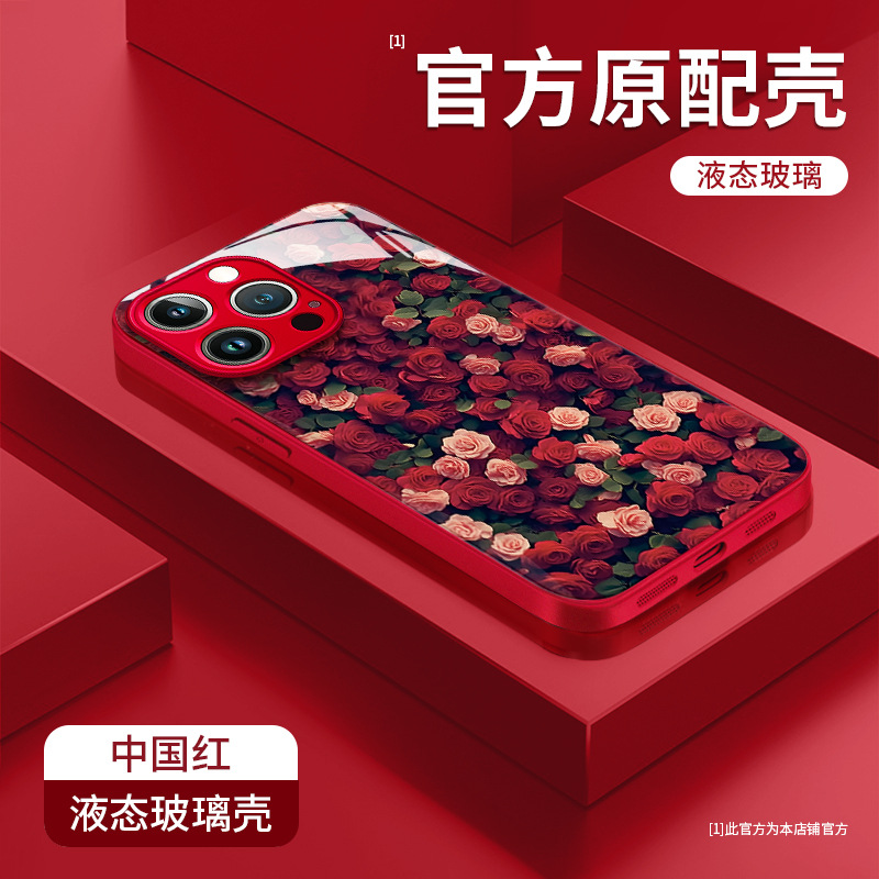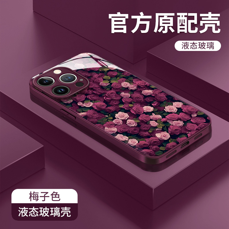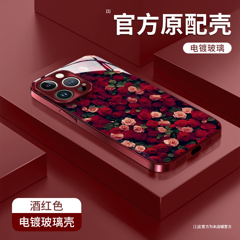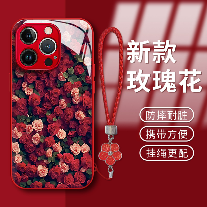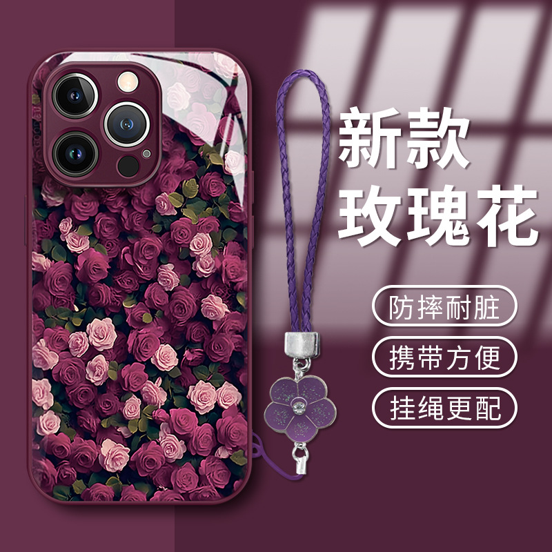 애플 16pro 전화 케이스 iphone15 전기 도금 유리 14 고급 감각 하락 방지 7/8 에 대한 장미 꽃 끈스토어 가기