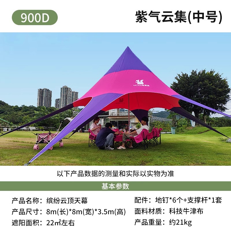 다채로운 단일 피크 겐팅 캐노피 텐트 연꽃 슈퍼 대형 완 총산 캠프 야외 캠핑 선 스크린 차양스토어 가기