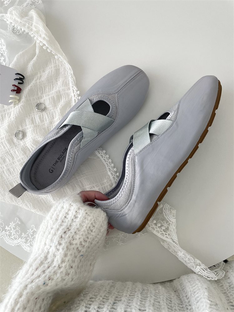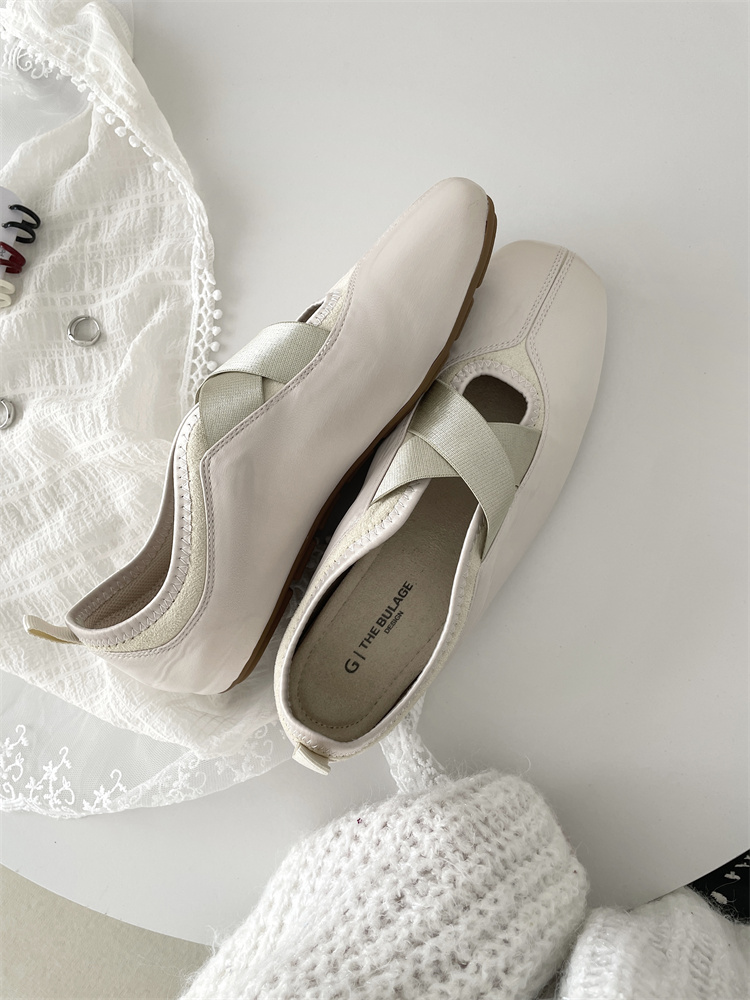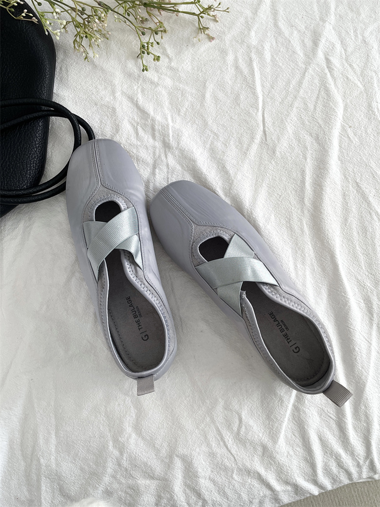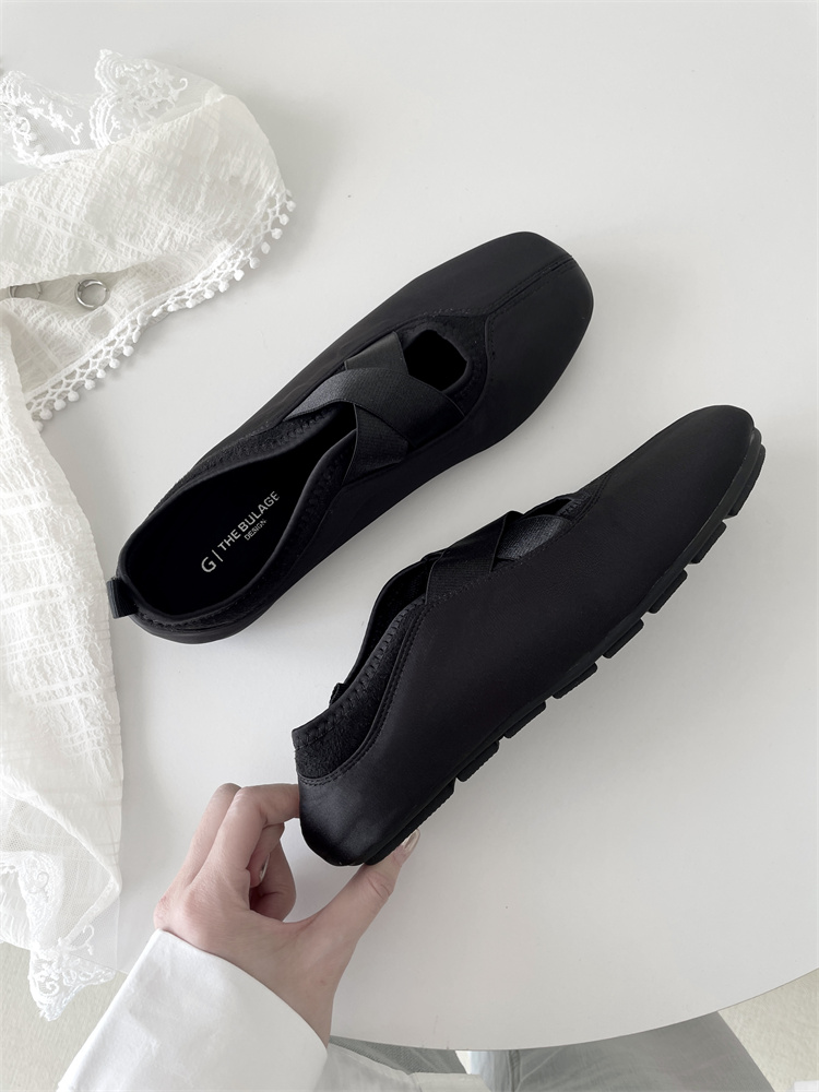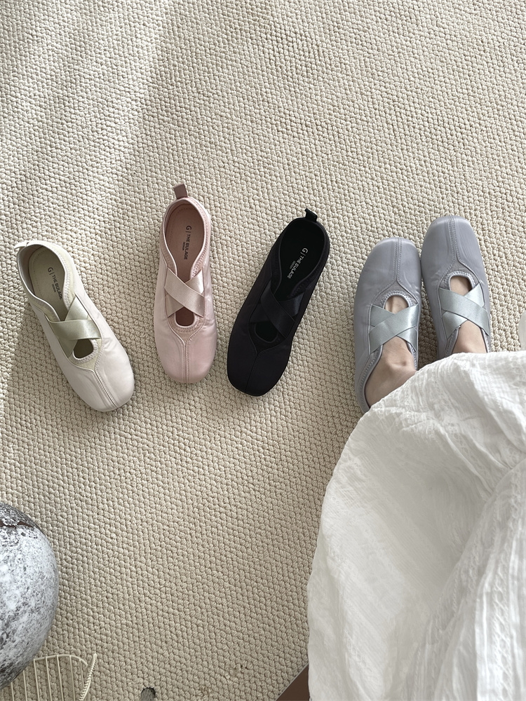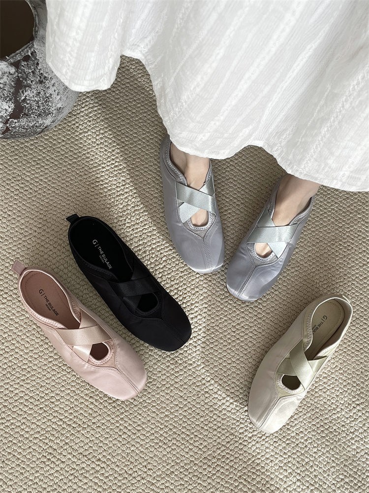 핑크 슈퍼 소프트 발레 신발 2025 초봄 새로운 프랑스 새틴 스퀘어 발가락 크로스 스트랩 플랫 캐주얼 신발스토어 가기
