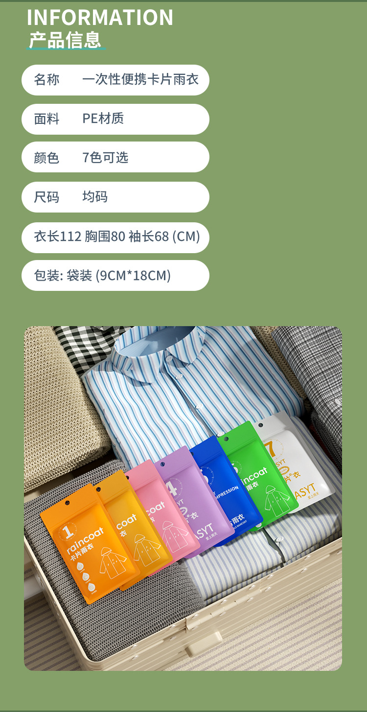 名称:一次性卡片雨衣