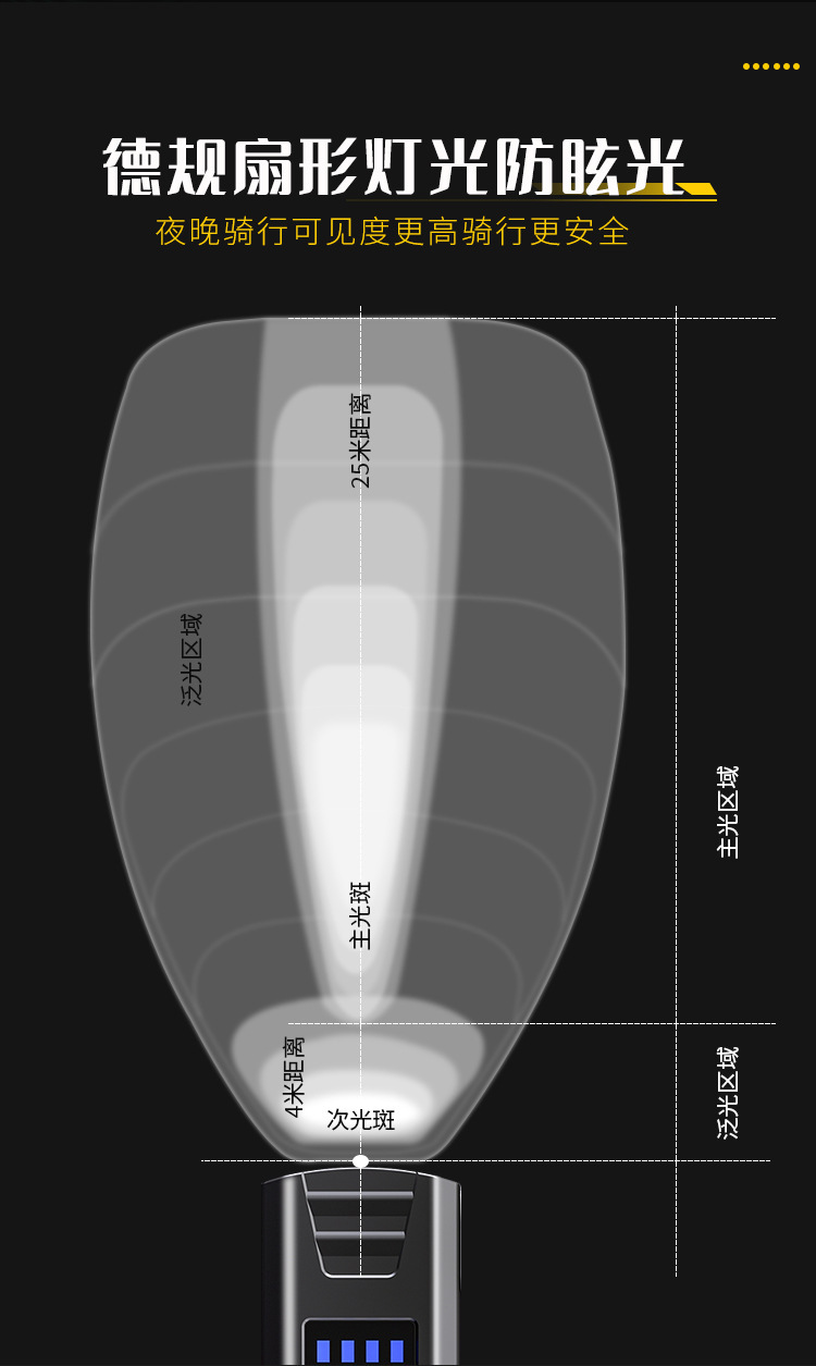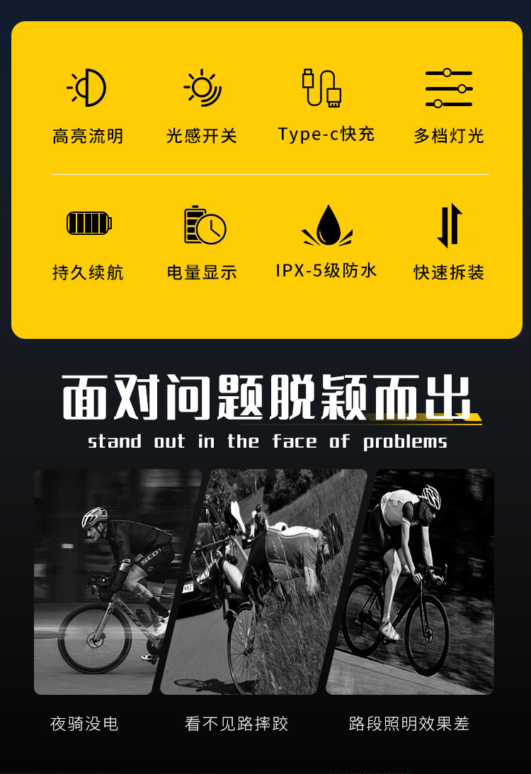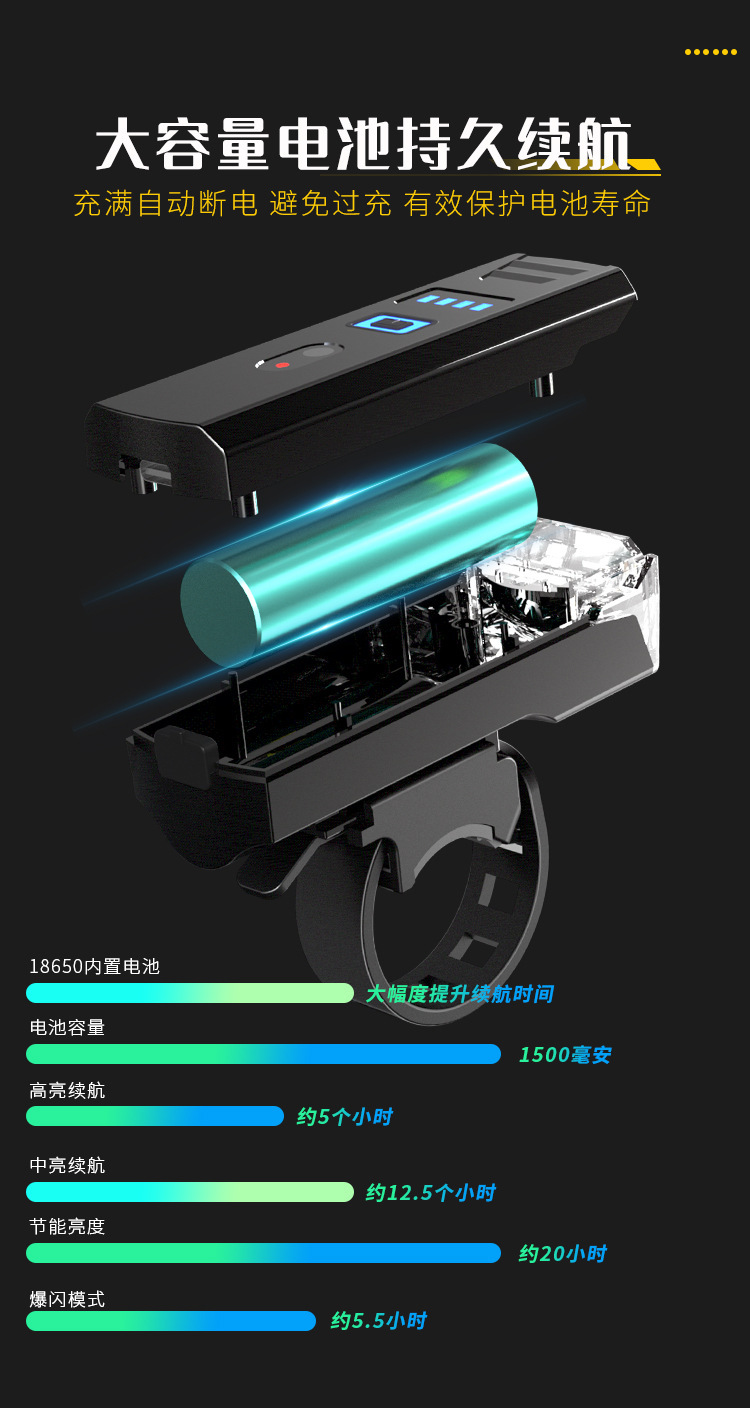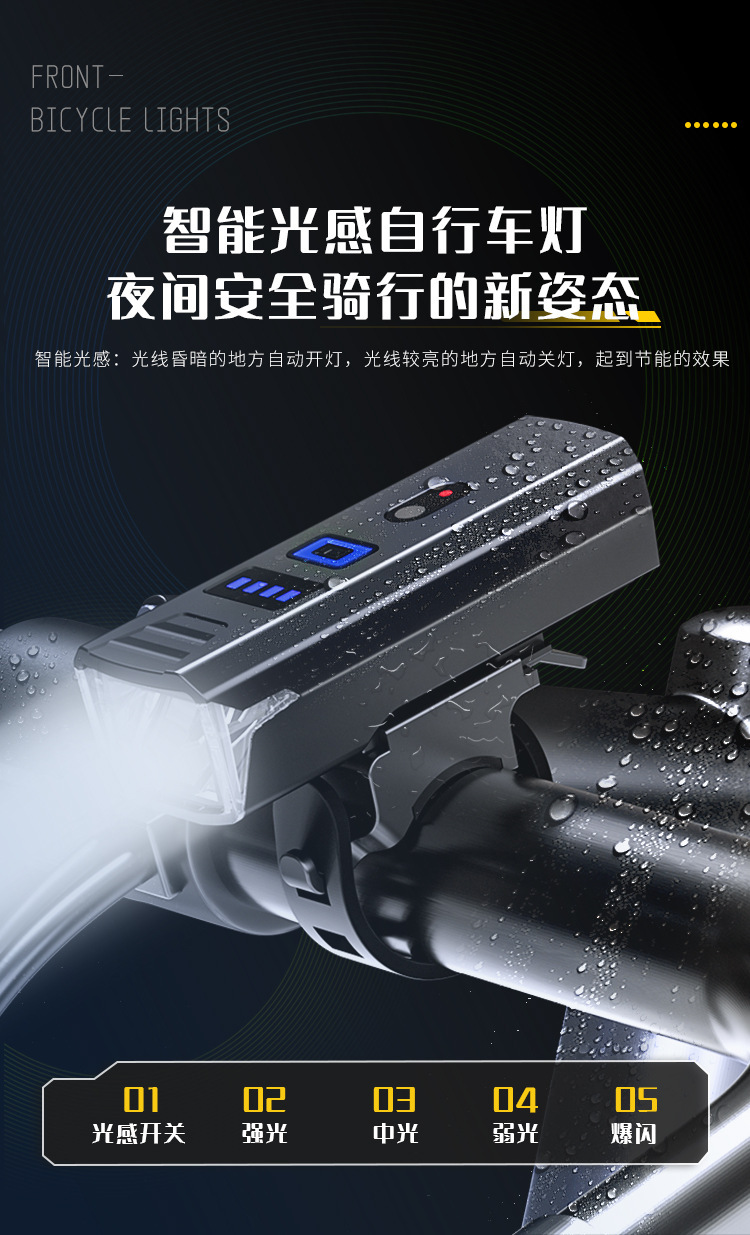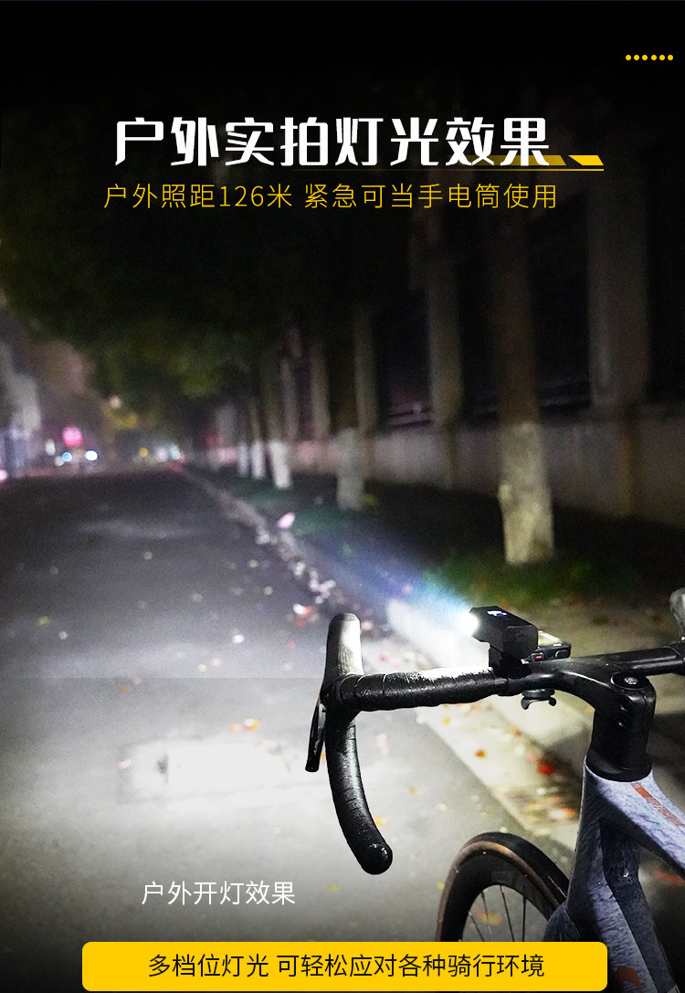 국경 간 새로운 자전거 조명 야외 자전거 조명 다기능 강한 빛 휴대용 야간 라이딩 조명 USB 충전 디지털 디스플레이
