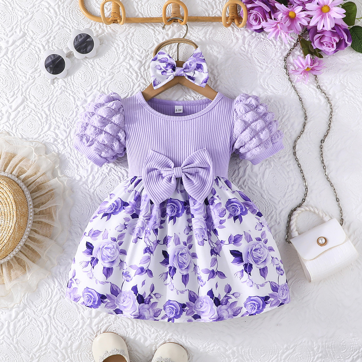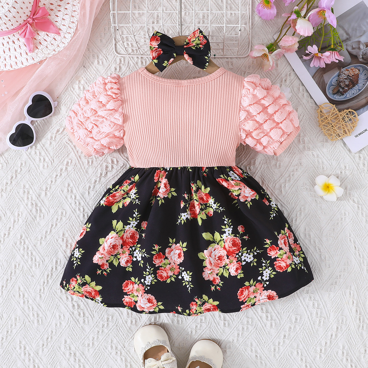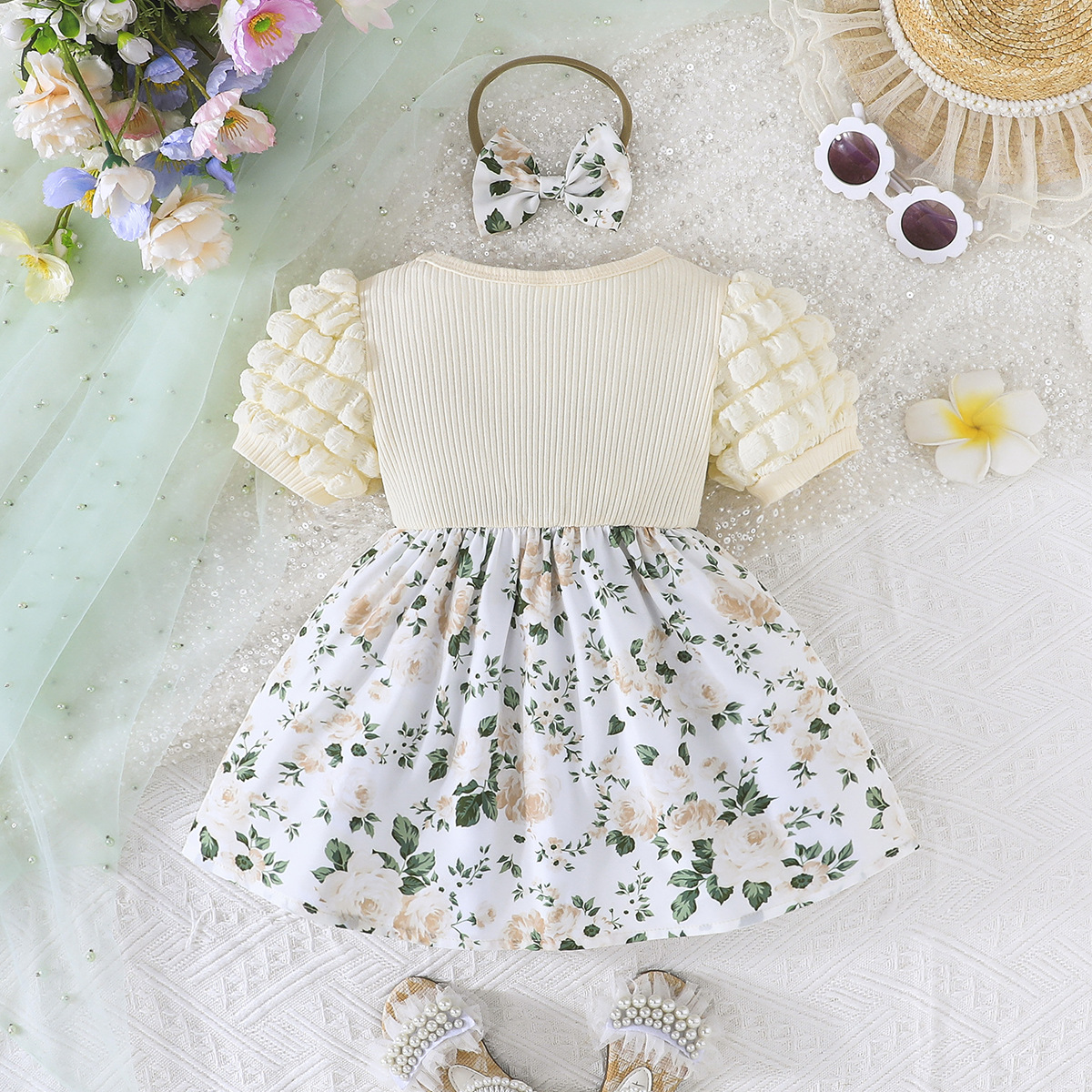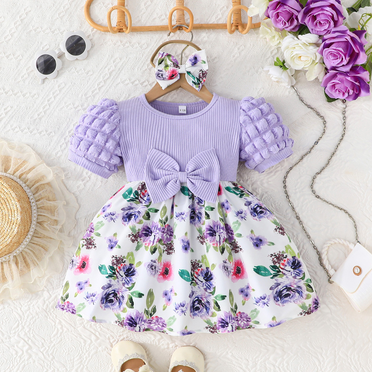2025 달콤한 아기 소녀 레이디 활 장식 꽃 원피스 터번 유럽과 미국의 국경 여름 새로운 스타일스토어 가기