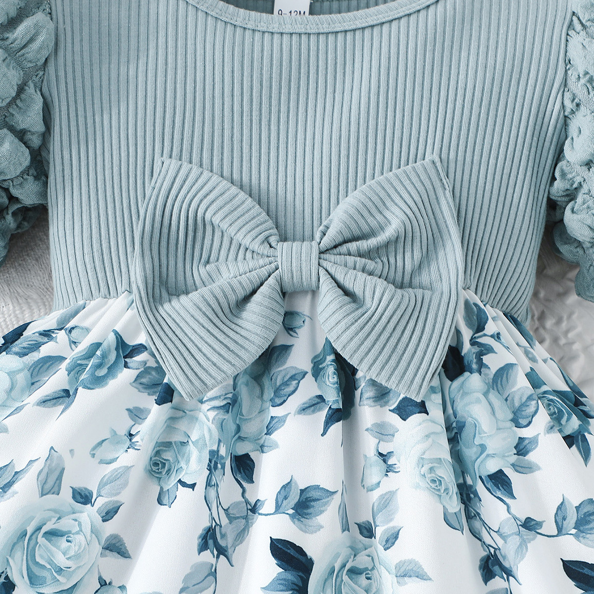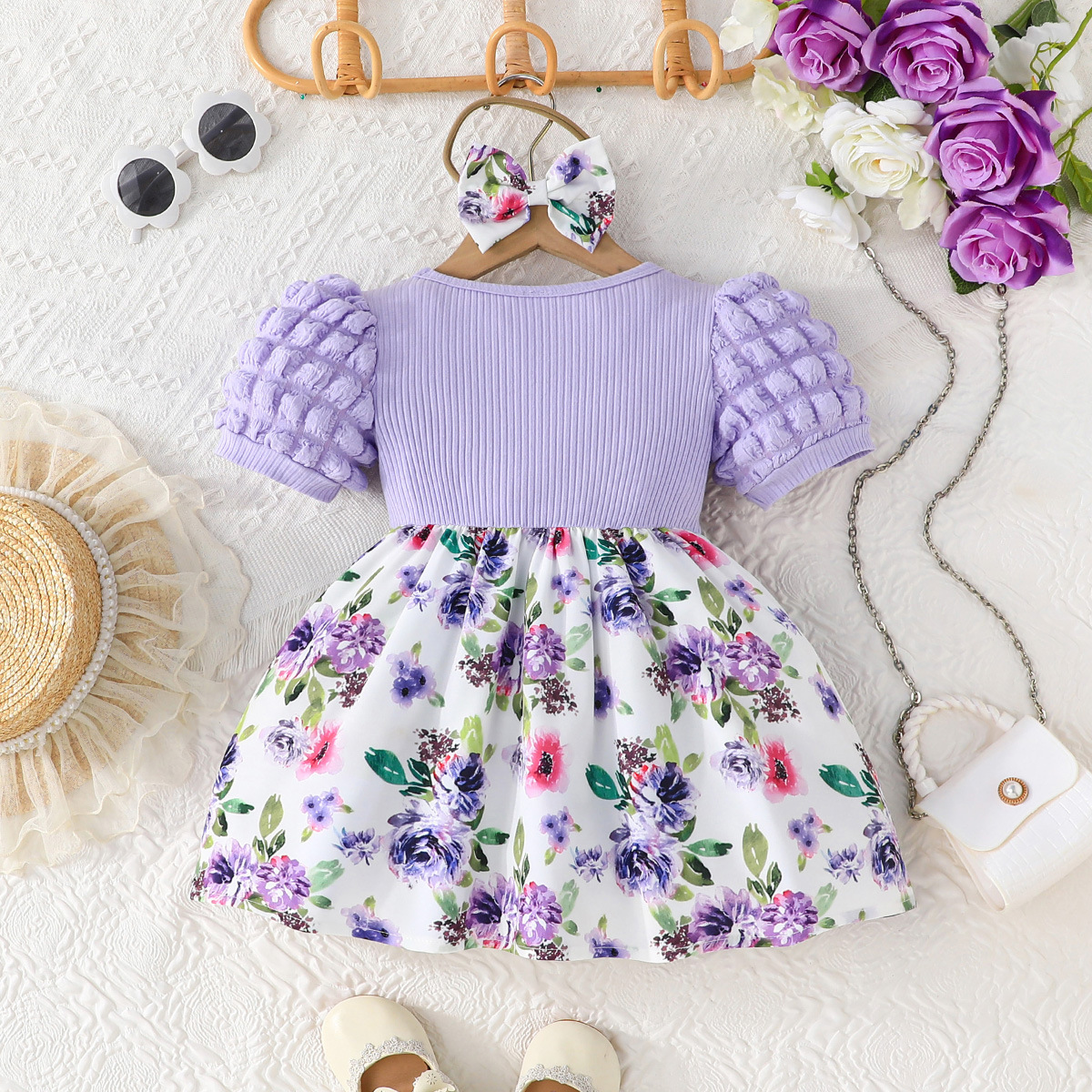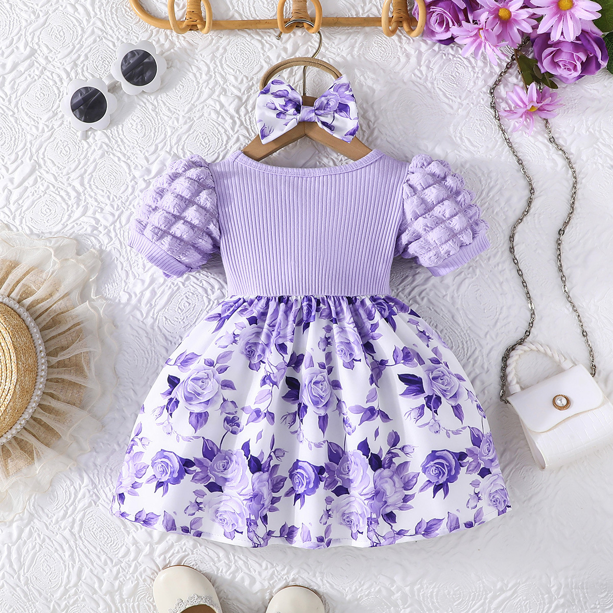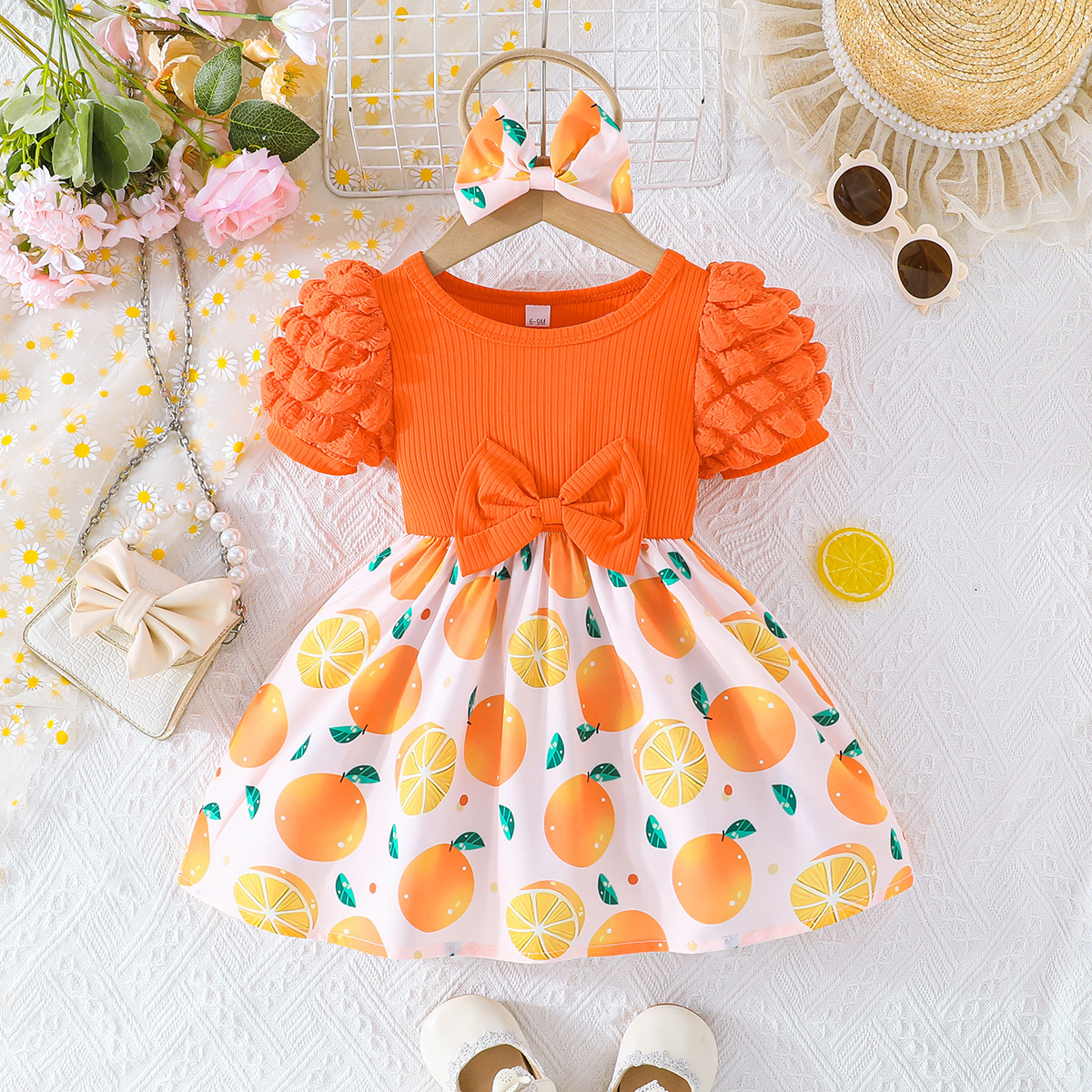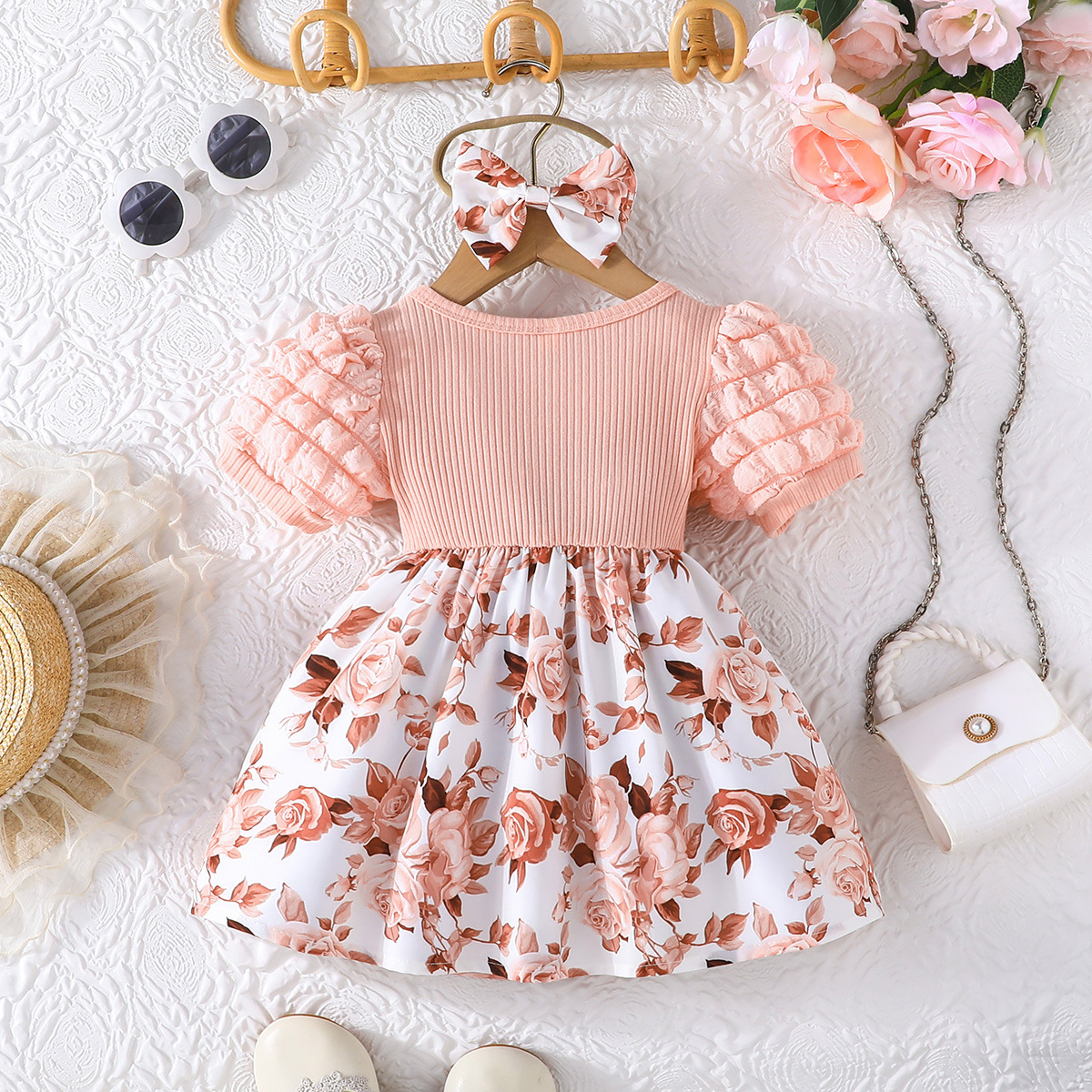 2025 달콤한 아기 소녀 레이디 활 장식 꽃 원피스 터번 유럽과 미국의 국경 여름 새로운 스타일스토어 가기