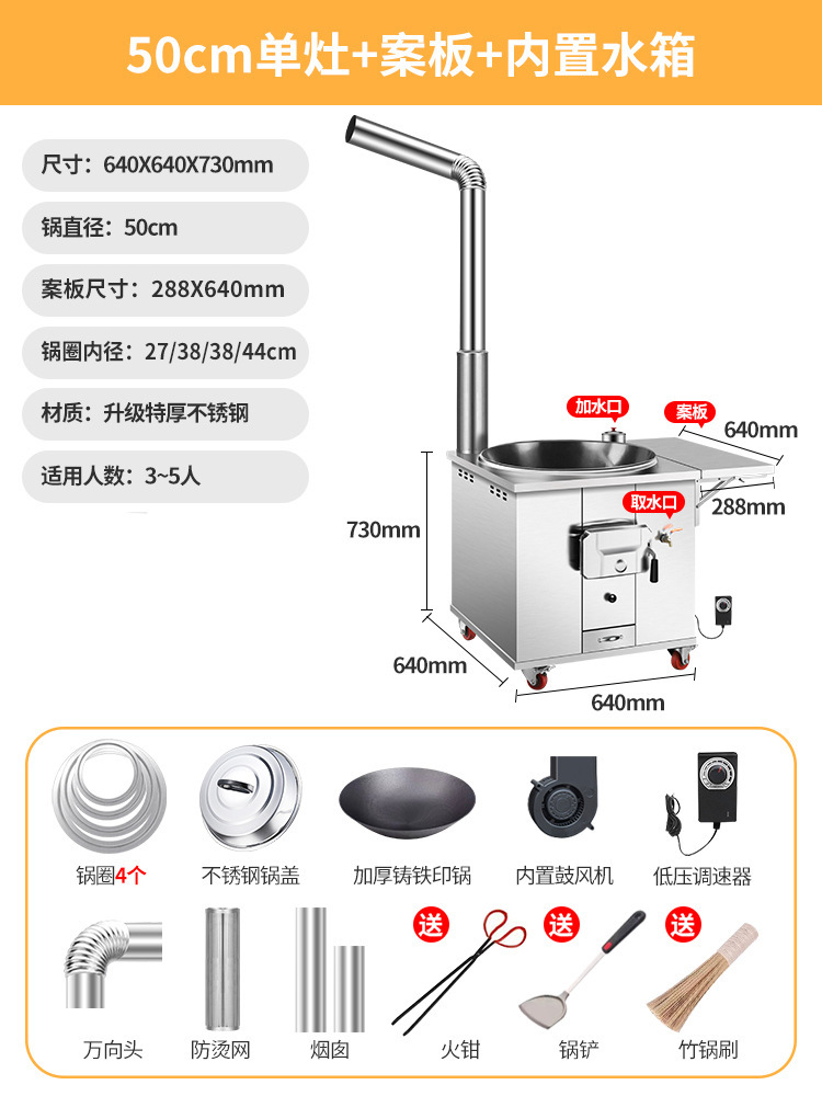 • 56CM 싱글 스토브 + 철판 구이 + 내장 물 탱크 + Zibo 바베큐 그릴 + 크고 작은 냄비 링