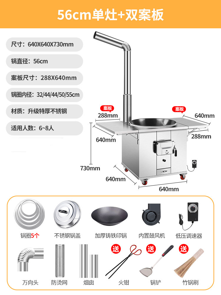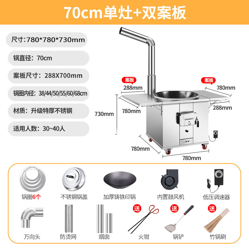 새로운 스타일 우드 스토브 우드 버닝 우드 스토브 가정용 농촌 304 스테인레스 스틸 스토브 지구 스토브 두꺼운 모바일 대형 냄비 테이블