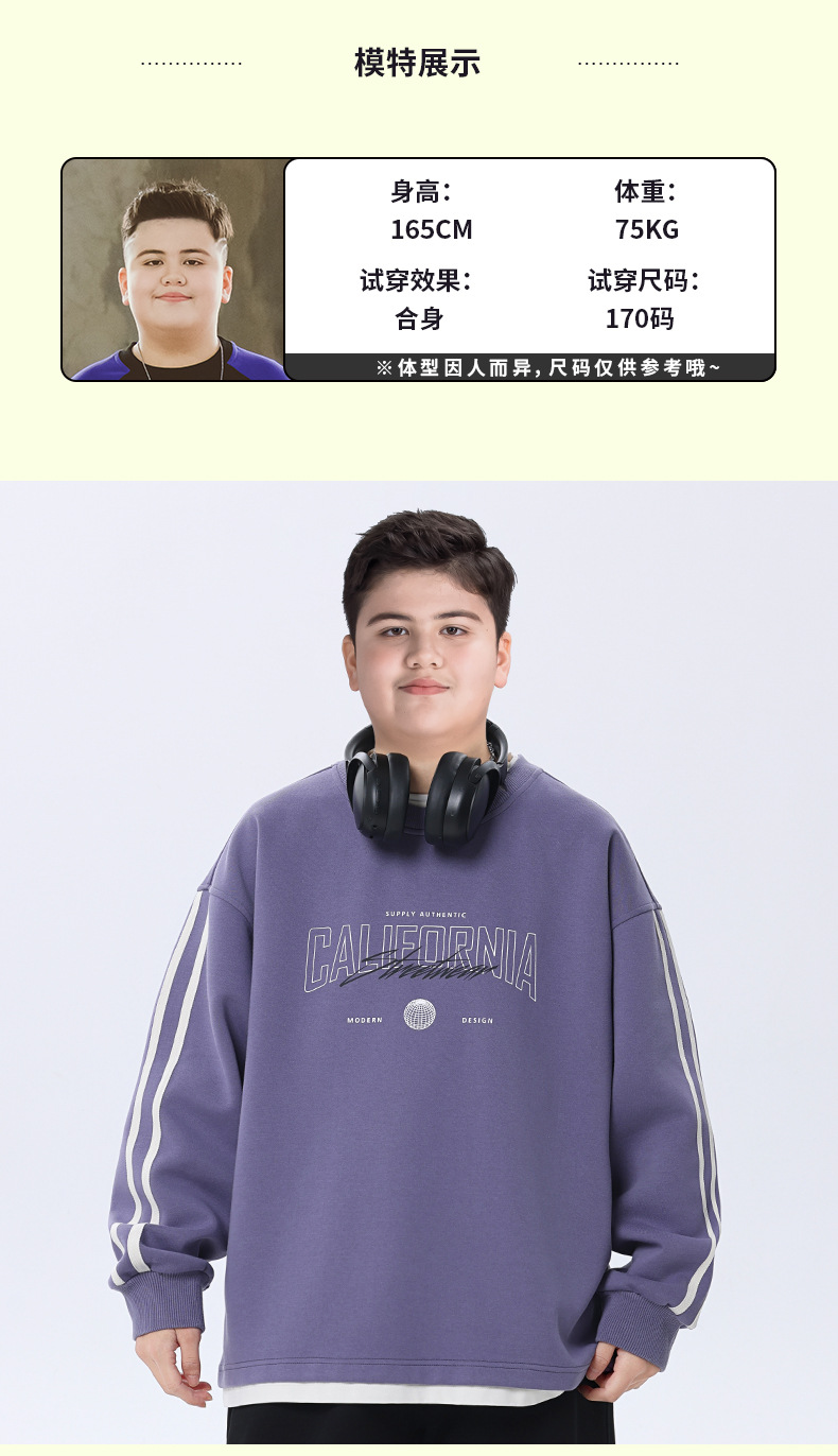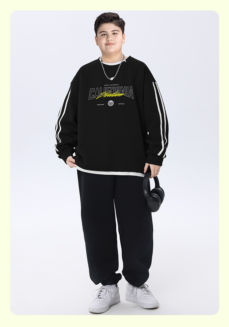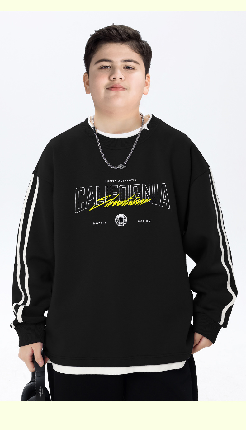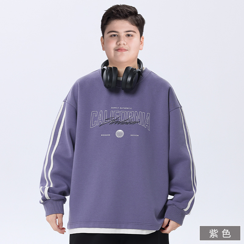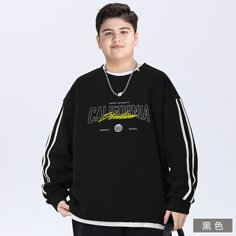 뚱뚱한 아동복 소년 운동복 플러스 뚱뚱한 봄 옷 2025 봄 신작 중학생 바닥 셔츠 느슨한 가짜 투피스