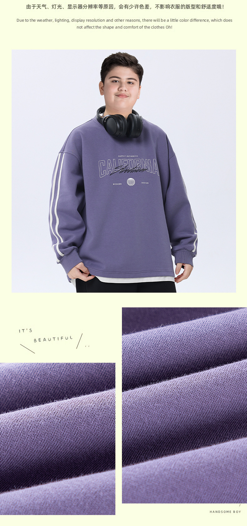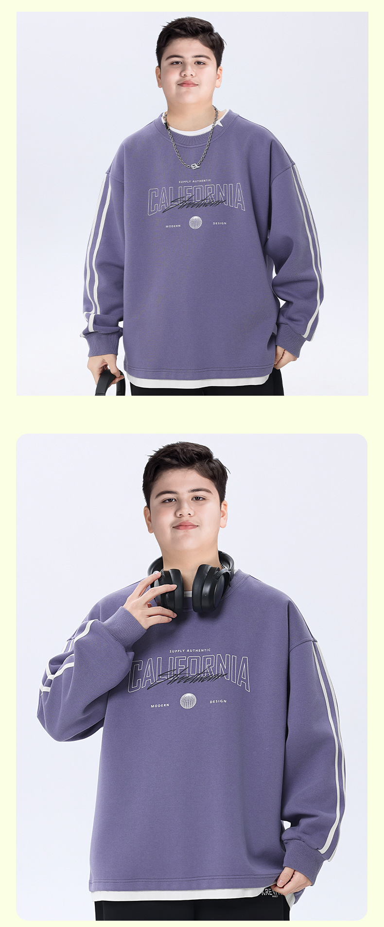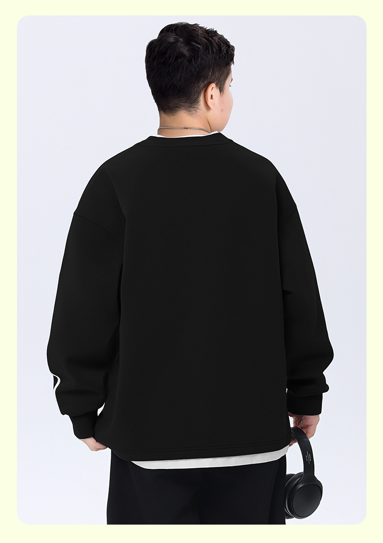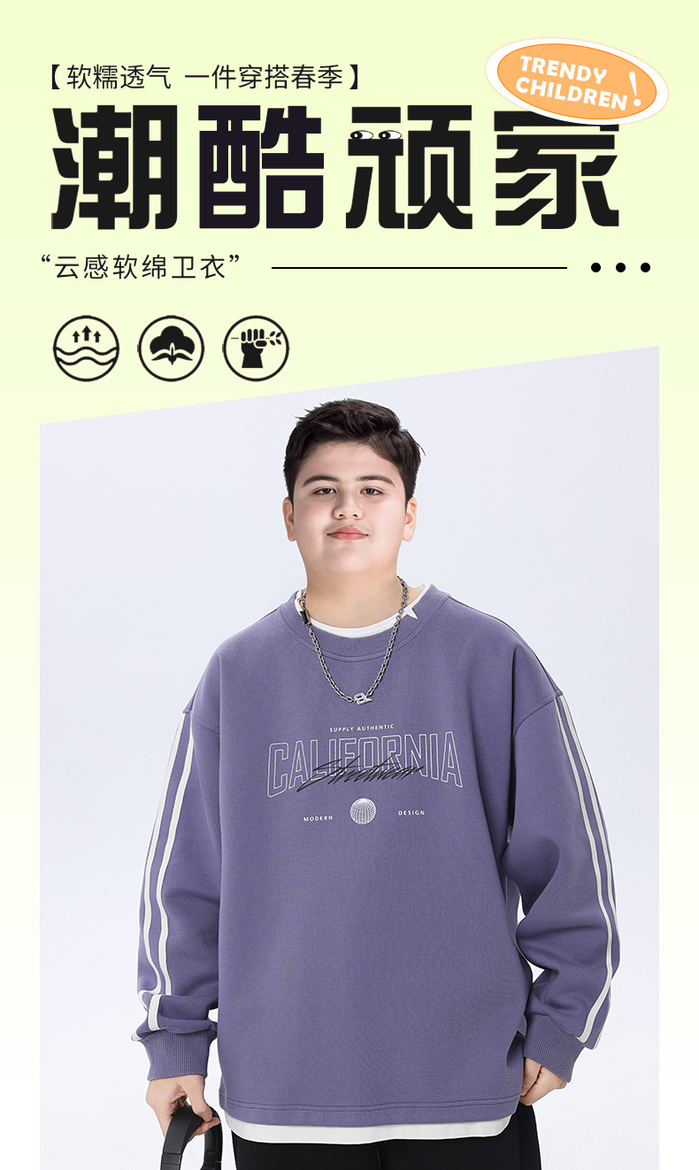 뚱뚱한 아동복 소년 운동복 플러스 뚱뚱한 봄 옷 2025 봄 신작 중학생 바닥 셔츠 느슨한 가짜 투피스