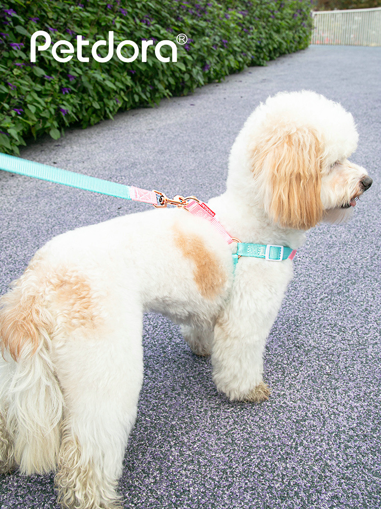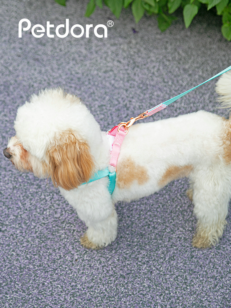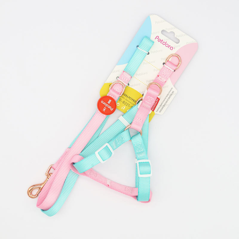 PETDORA Macaron 색상 대비 개 가슴 스트랩 견인 로프 세트 질식 방지 조정 가능한 개 워킹 로프스토어 가기
