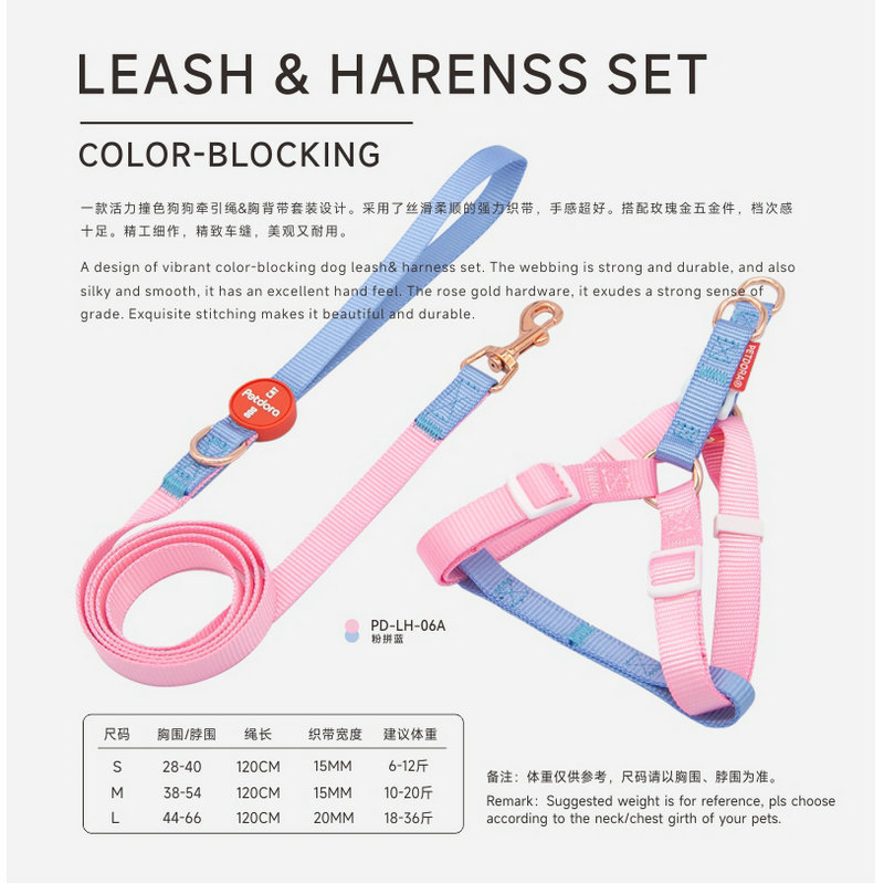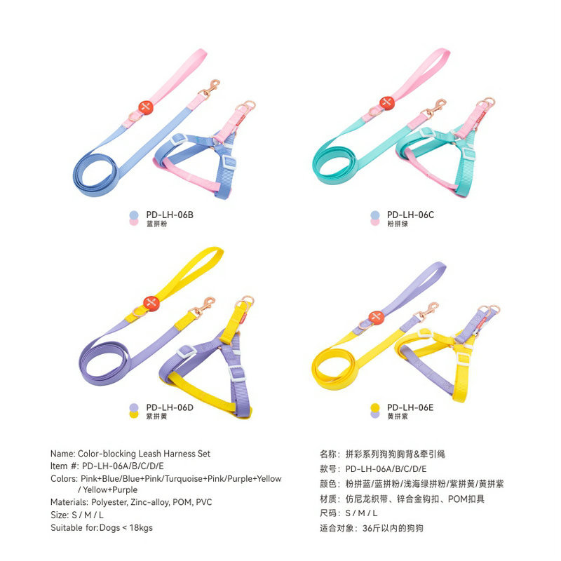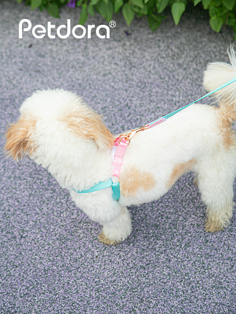 PETDORA Macaron 색상 대비 개 가슴 스트랩 견인 로프 세트 질식 방지 조정 가능한 개 워킹 로프